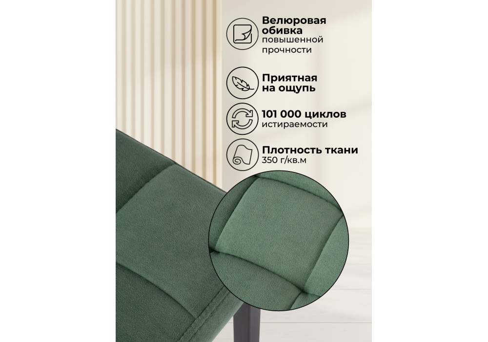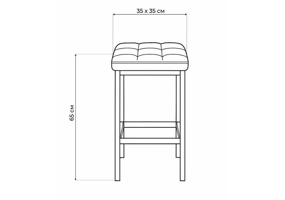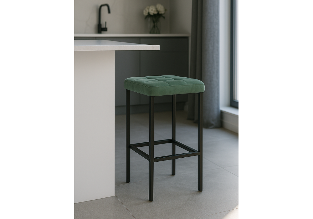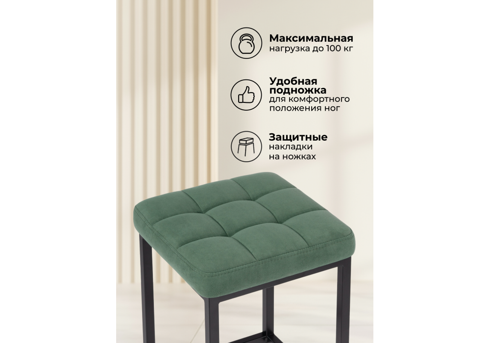 Материал каркаса - металл; Материал сиденья - велюр; Материал обивки - велюр; Цвет ножек - черный; Ширина - 35; Глубина - 35; Высота - 65;