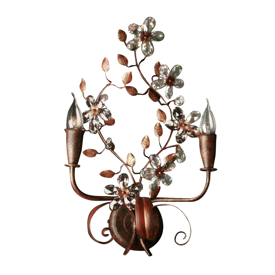 Бра 2-х рожковое из коллекции MALVA на арматуре из кованного металла с декоративными завитками и ветвями.Декор: кристаллы Swarovski в виде цветов. Цвет арматуры: черно-бордовый с золотыми потертостями. По индивидуальному заказу возможны различные модификации и варианты отделки. Примеры цветовой палитры представлены в разделе PDF каталогов.