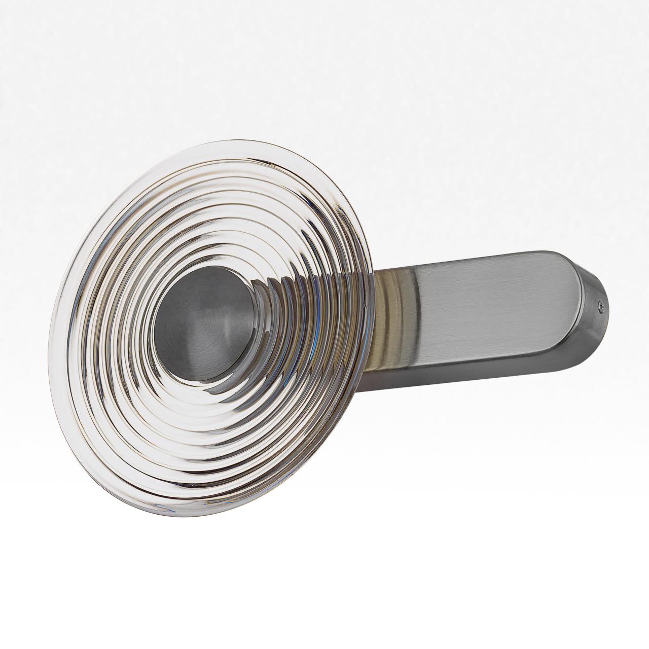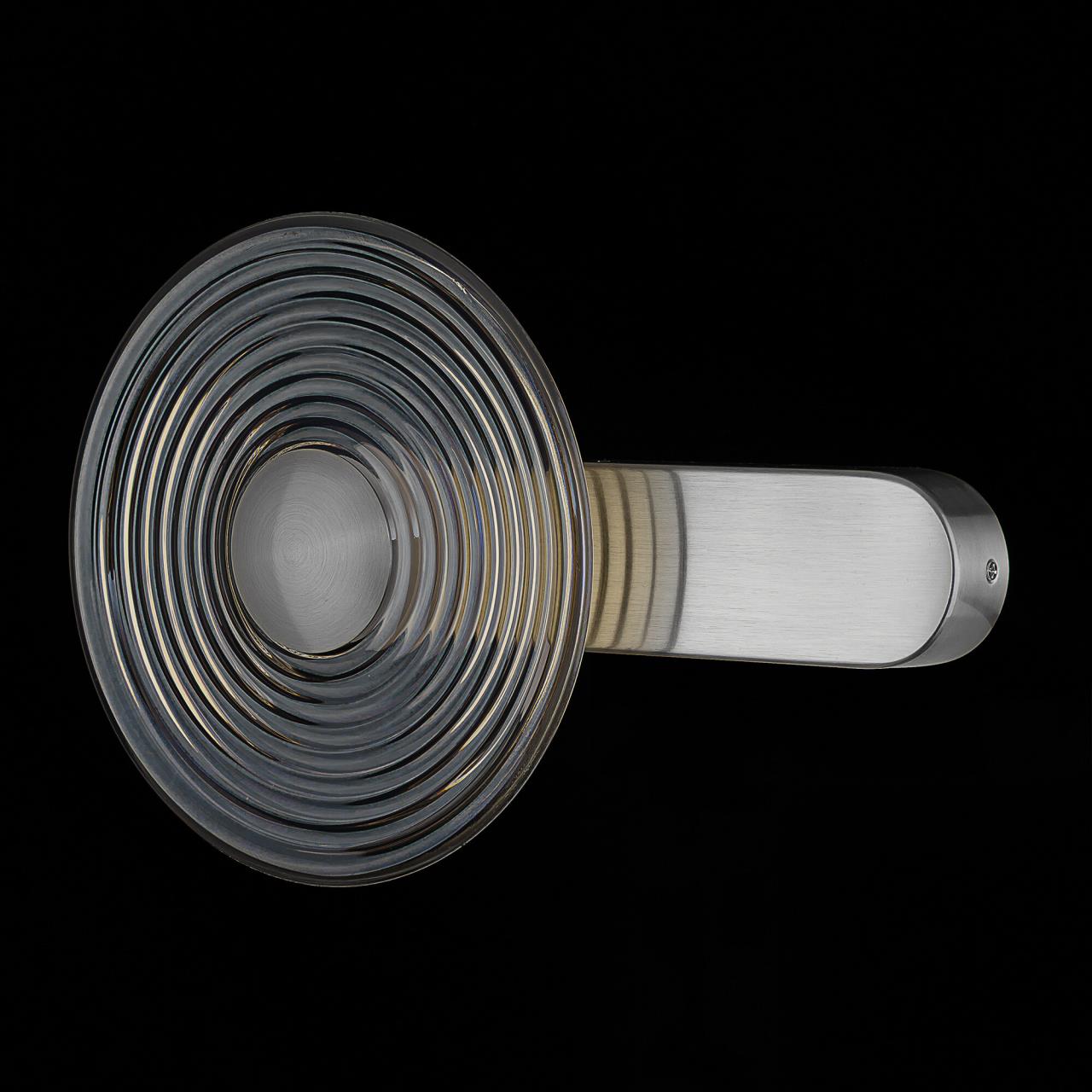 Корпус светильника изготовлен из металлического сплава со стильным хромированным оттенком. Большой круглый плафон — из прозрачного стекла. Благодаря встроенным светодиодам с цветовой температурой 3000К бра светит мягким, равномерным светом без мерцания и пульсаций. Общая мощность светильника — 7Вт.
