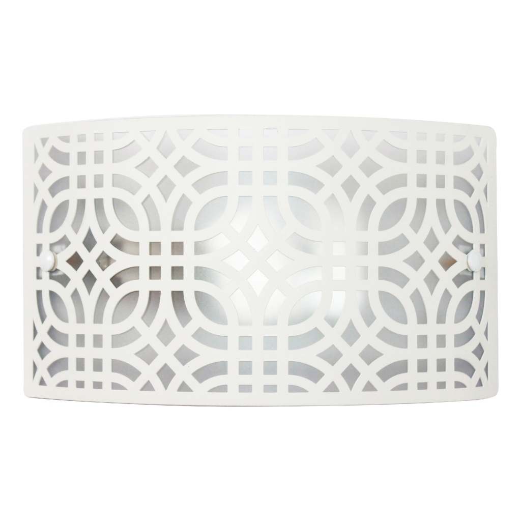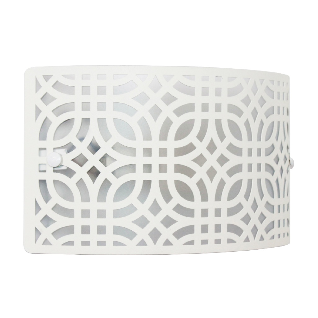 Настенный светильник из коллекции Амина - это прекрасное сочетание дизайна и функциональности. Стальной каркас белого цвета и стальной плафон отлично дополнит интерьер любого помещения. Настенный светильник с плафоном из металла вырезанным с помощью лазерного станка осветит помещение площадью 3 кв. м. Рекомендуем использовать для устройства лампы накаливания с цоколем E27 и мощностью 60 W. Прибор произведен с использованием материала: металла и пвх пленки . Основным цветом товара является белый . За счет прозрачной подложки светильник мягко рассеивает свет . Данную модель 1005405252 спешите купить в интернет-магазине 220svet.