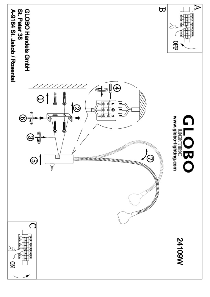 Бра Globo Serpent 24109W в Оренбурге
