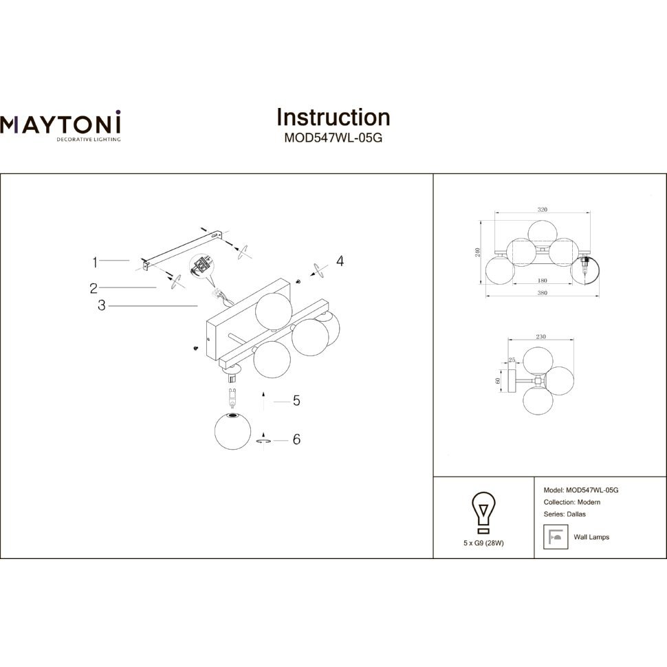 - Количество ламп: 5 шт