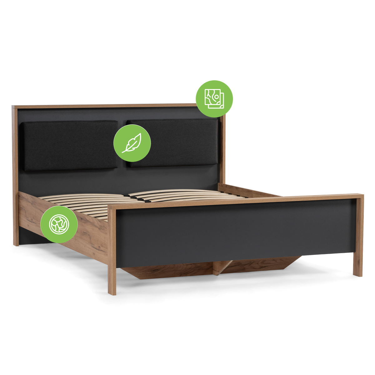 Купить "Двуспальная кровать 180х200 Woodville Тхан дуб крафт золотой / антрацит 533199"
