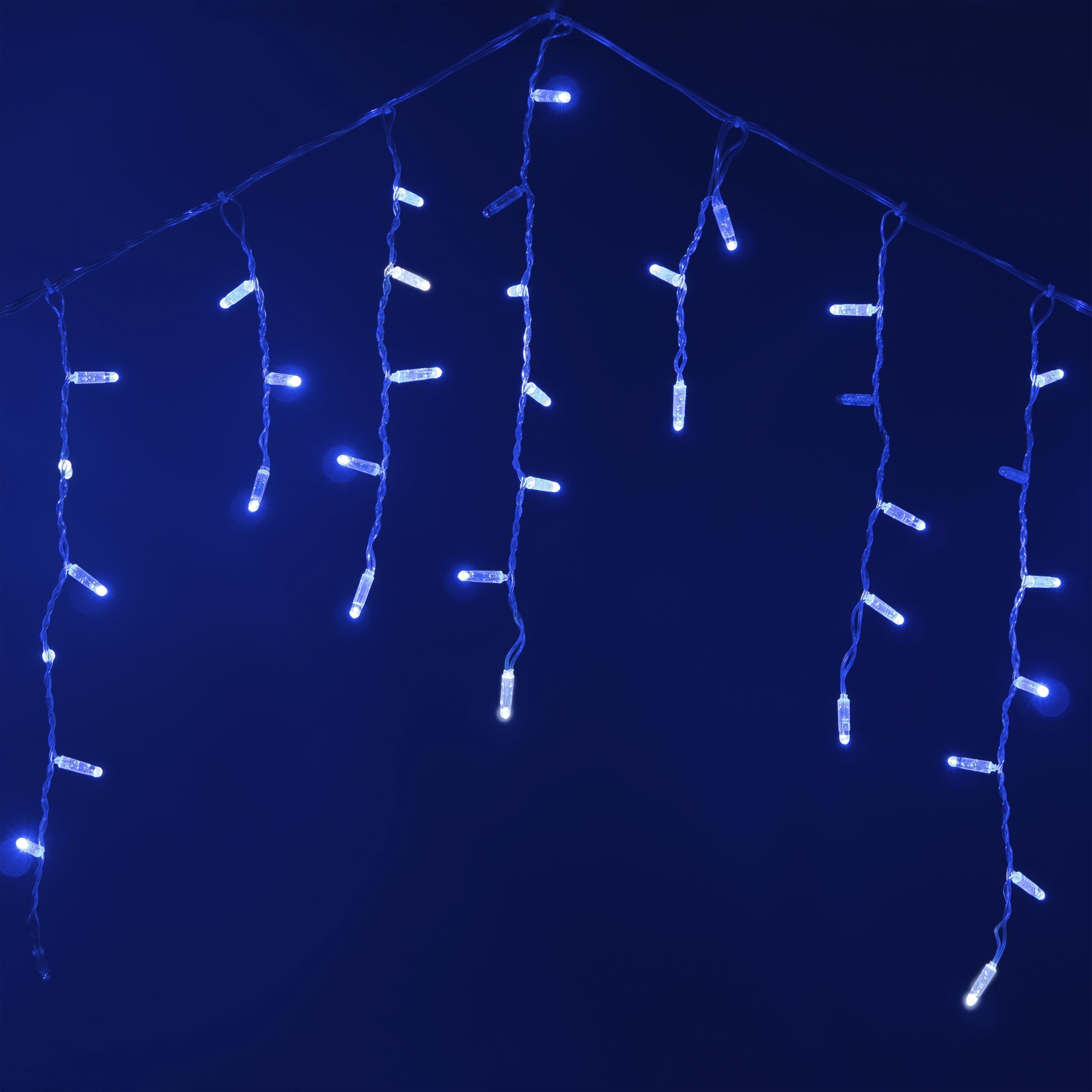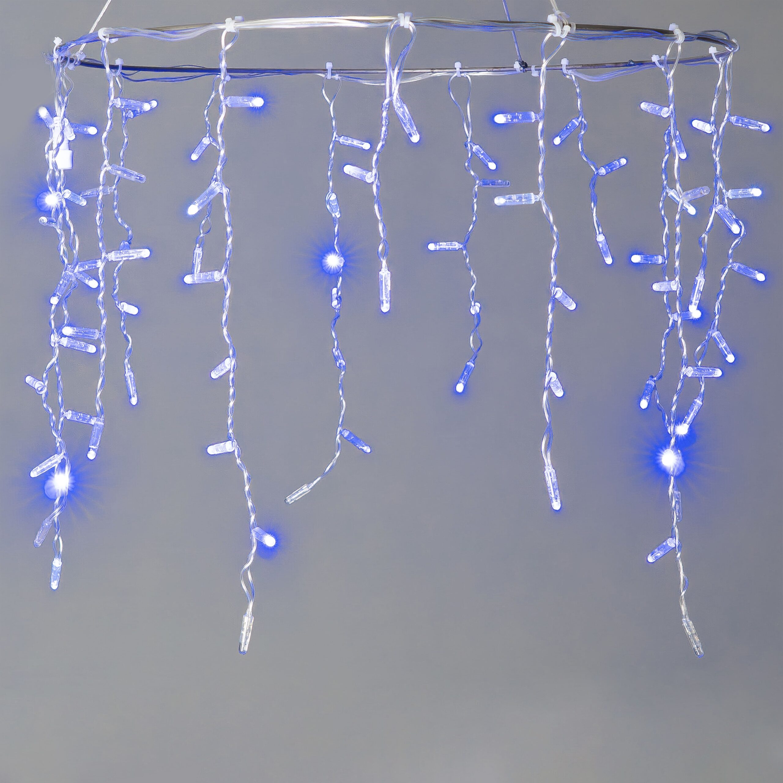 Купить "Гирлянда Бахрома с Колпачком 3,2 x 0,9 м Синяя с Мерцанием Белого Диода 220В, 168 LED, Провод Прозрачный ПВХ, IP65 LTC PIL180BLWCAP-10-2B"