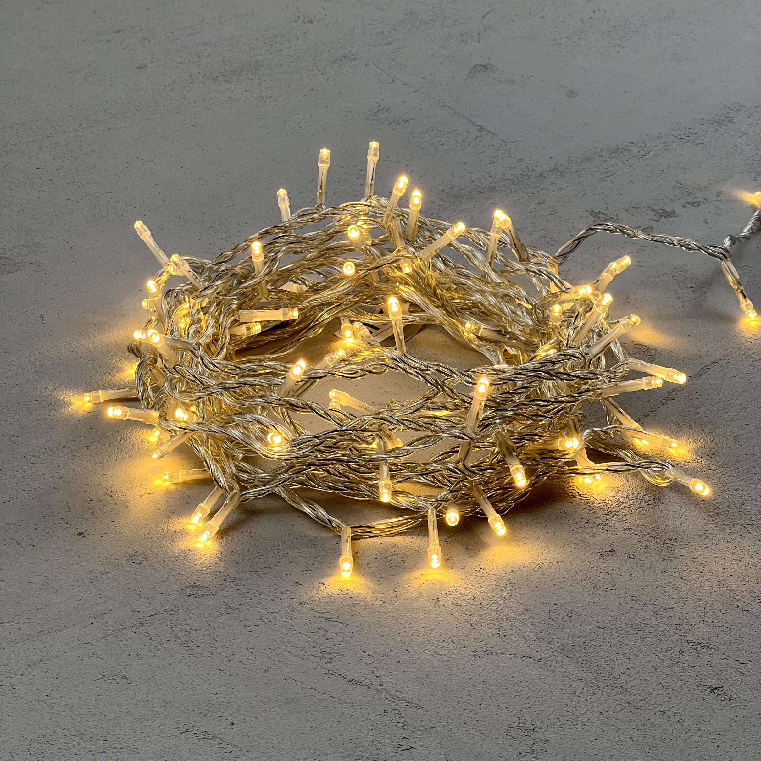 Купить "Гирлянда Нить 10м Тепло-Белая 24В, 100 LED, Провод Прозрачный ПВХ, IP54 LTC PST100-10-1WW"
