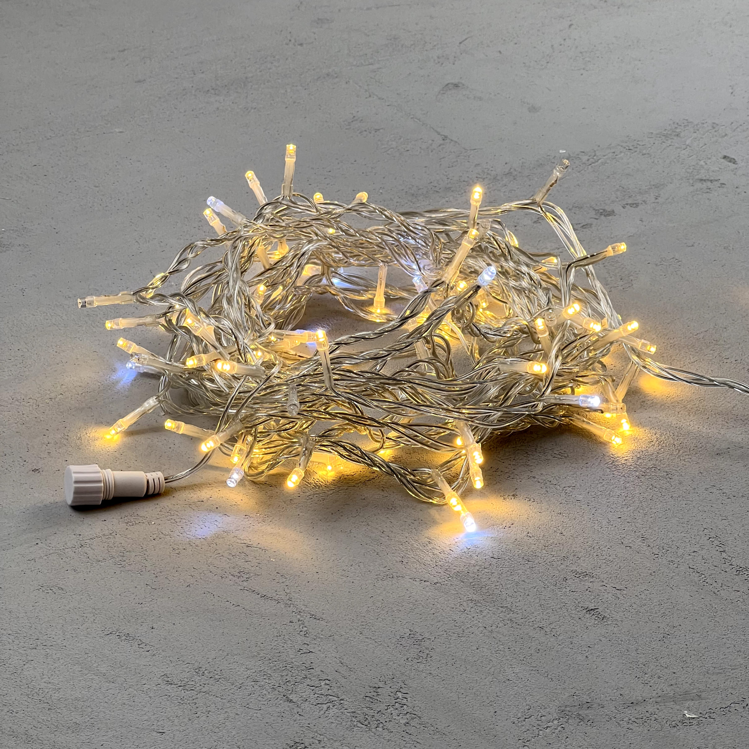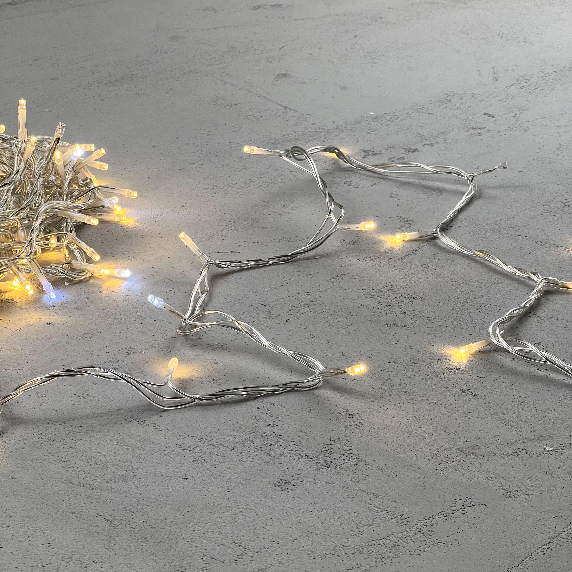 Гирлянда Нить 10м Тепло-Белая с Мерцанием Белого Диода 24В, 100 LED, Провод Прозрачный ПВХ, IP54 LTC PST100BLW-10-1WW в Оренбурге