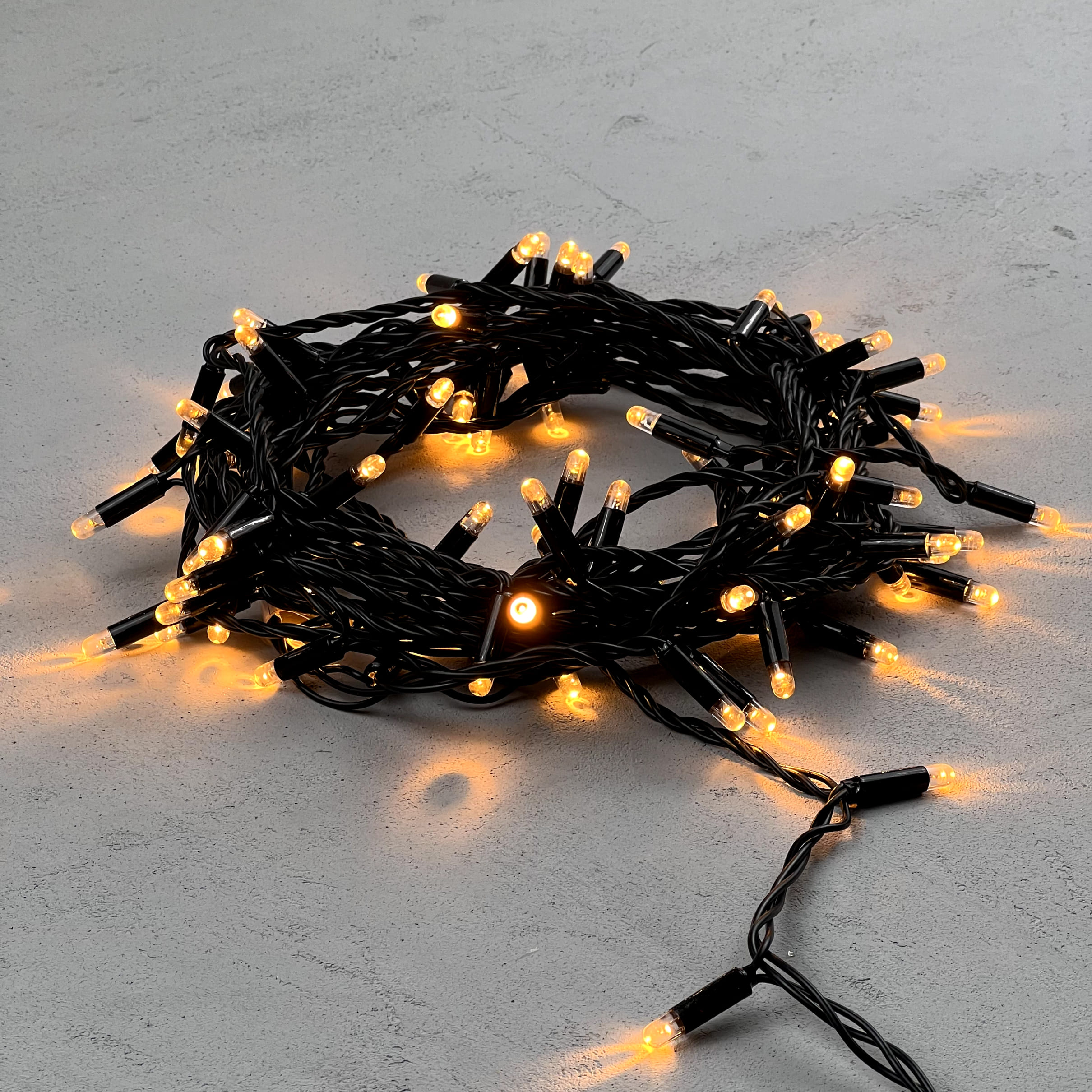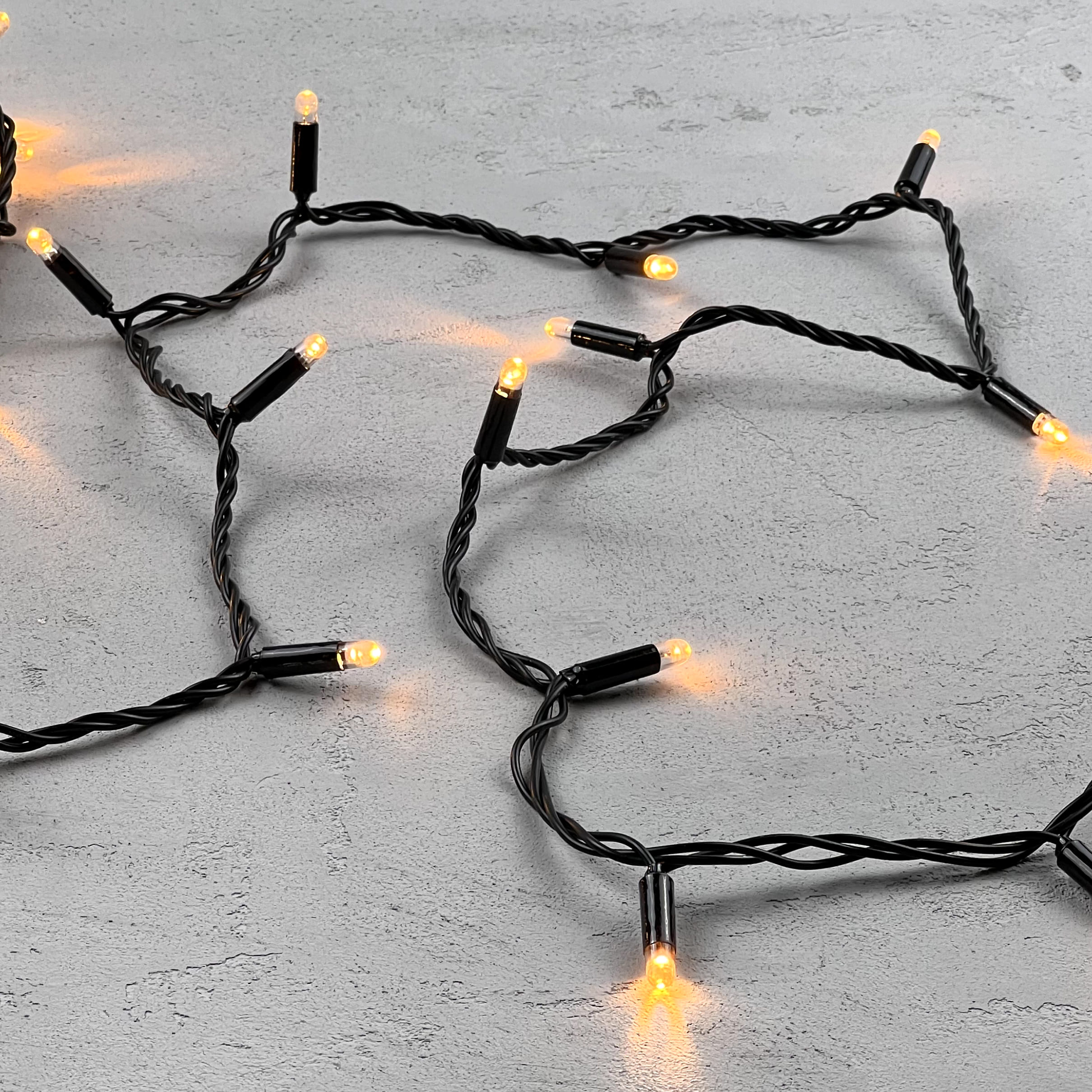 Купить "Гирлянда Нить с Колпачком 10м Экстра Тепло-Белая 24В, 100 LED, Провод Черный ПВХ, IP65 LTC PST100CAP-11-1EWW"