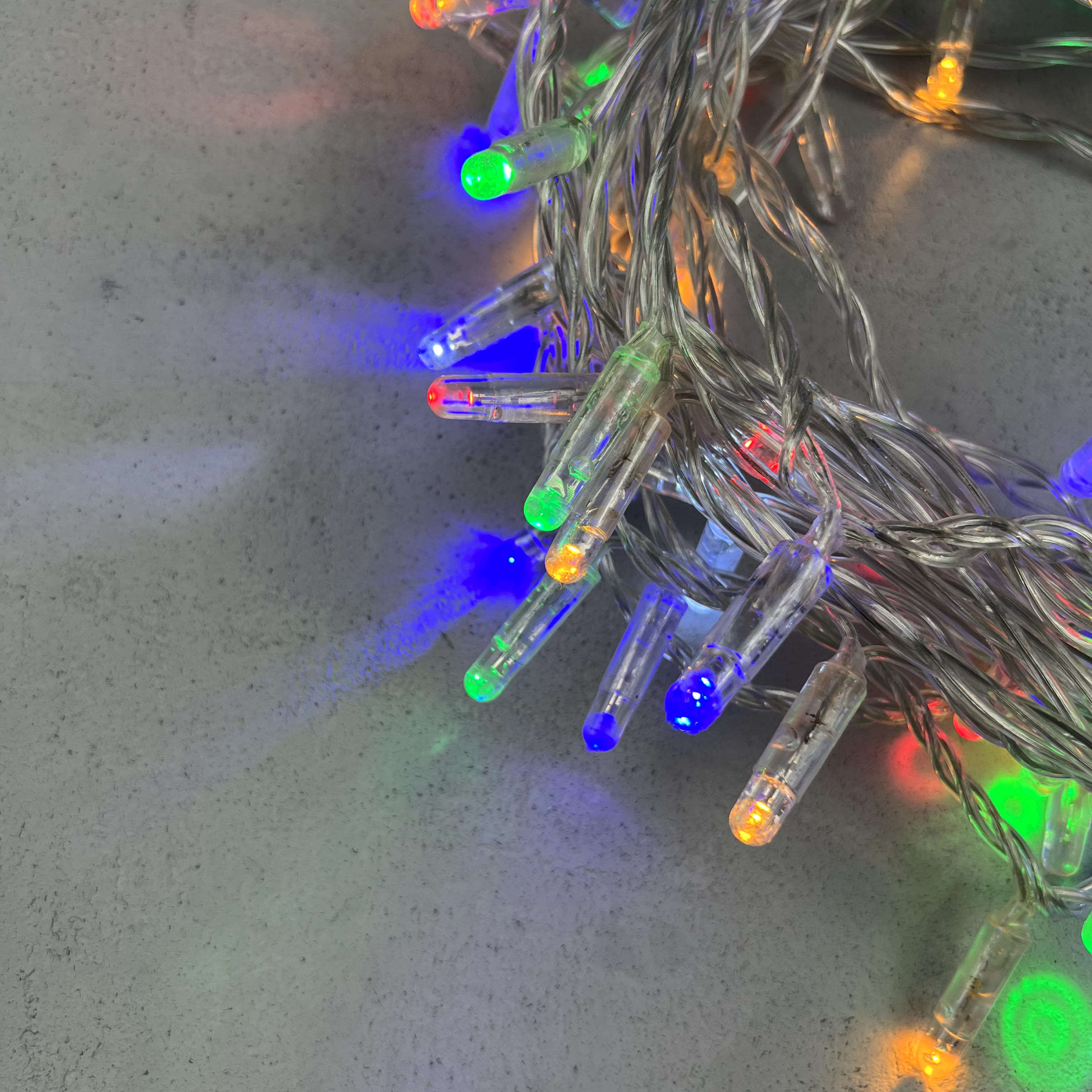 Купить "Гирлянда Нить с Колпачком 10м Разноцветная с Мерцанием Белого Диода 24В, 100 LED, Провод Прозрачный ПВХ, IP65 LTC PST100BLWCAP-10-1M"