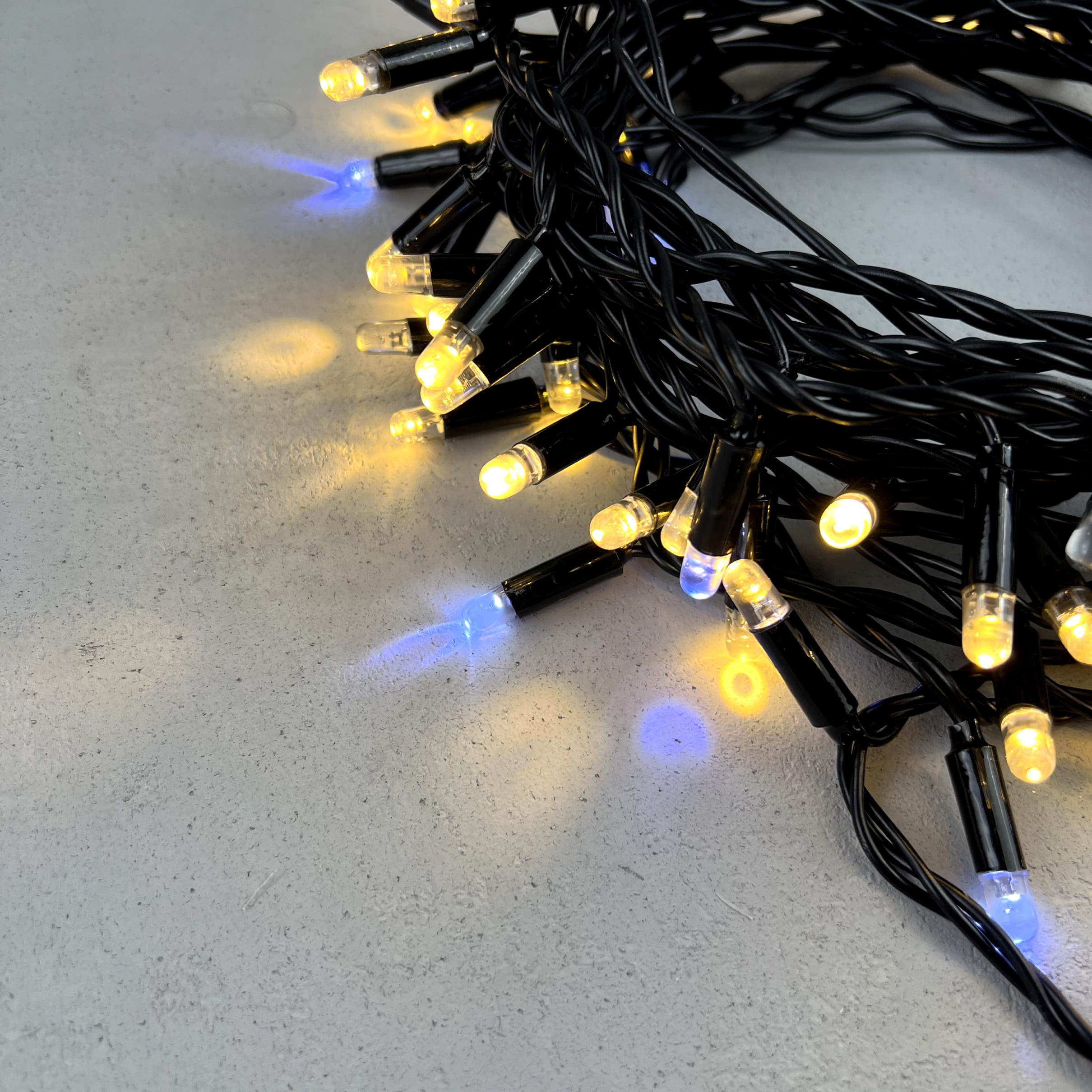 Гирлянда Нить с Колпачком 10м Тепло-Белая с Мерцанием Белого Диода 220В, 100 LED, Провод Черный ПВХ, IP65 LTC PST100BLWCAP-11-2WW в Оренбурге
