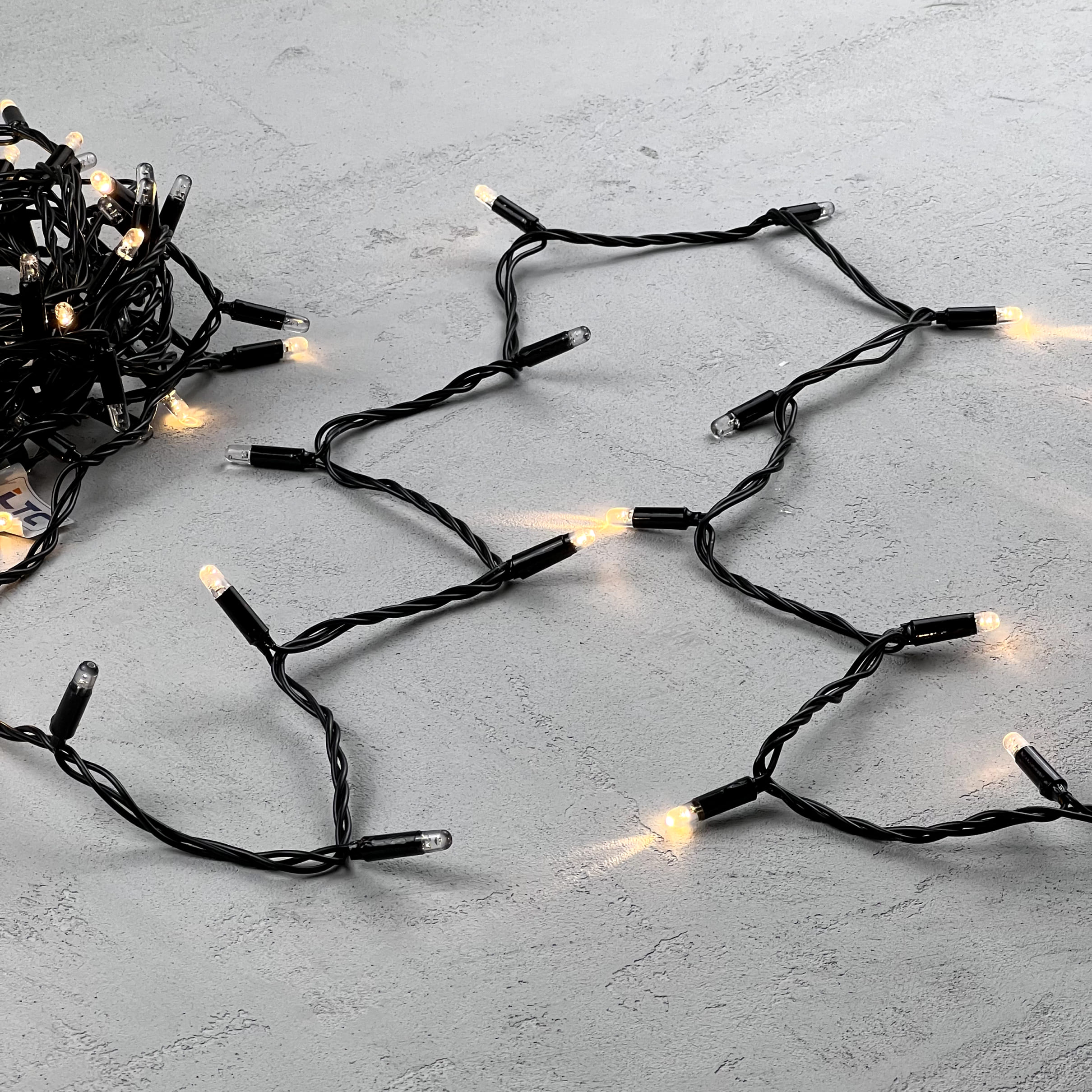 Гирлянда Нить с Колпачком 10м Тепло-Белая с Мерцанием Каждого Диода 24В, 100 LED, Провод Черный ПВХ, IP65 LTC PST100ABLCAP-11-1WW в Оренбурге