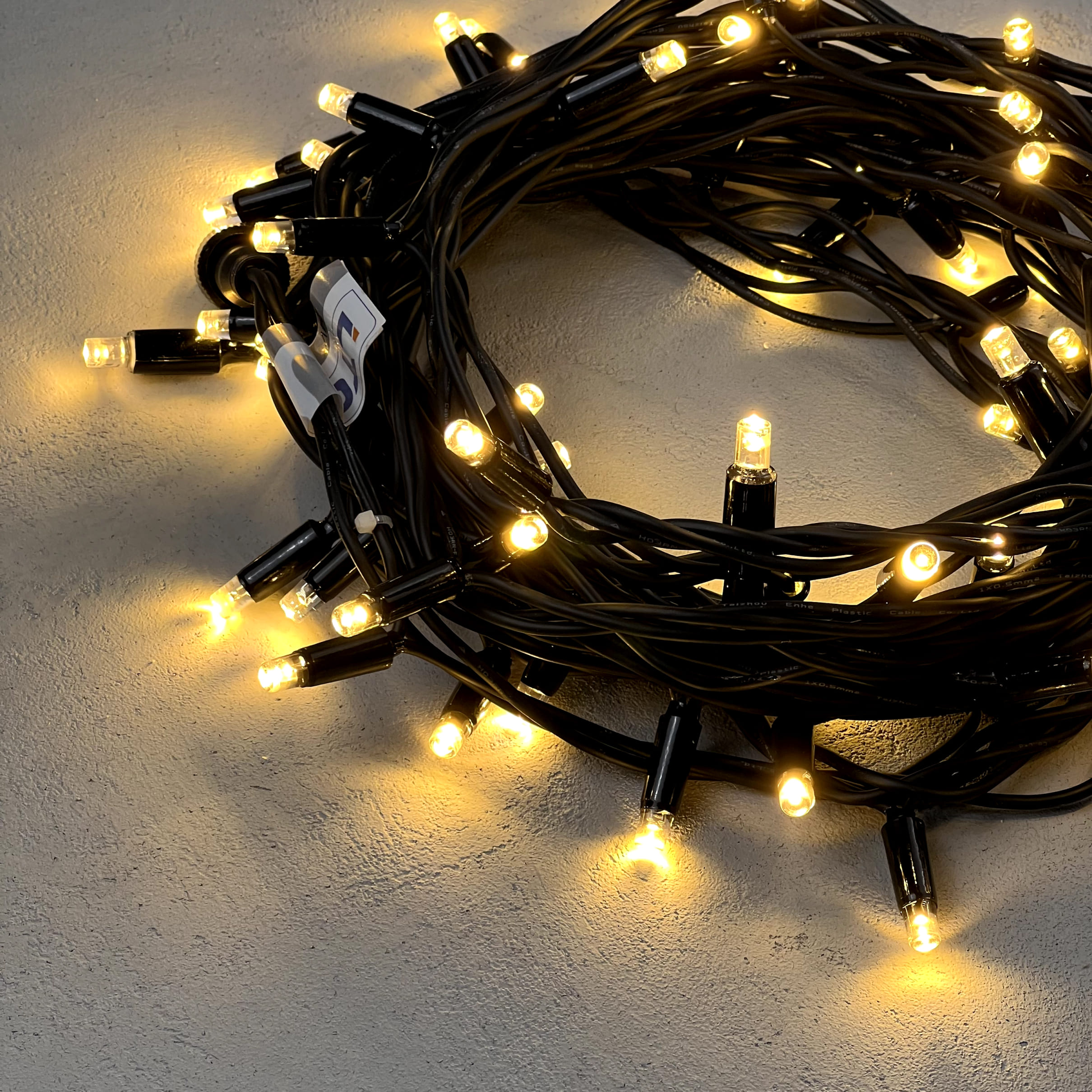 Купить "Гирлянда Нить 10м Тепло-Белая 220В, 75 LED, Провод Черный Каучук, IP65 LTC LL75-1-2WW"