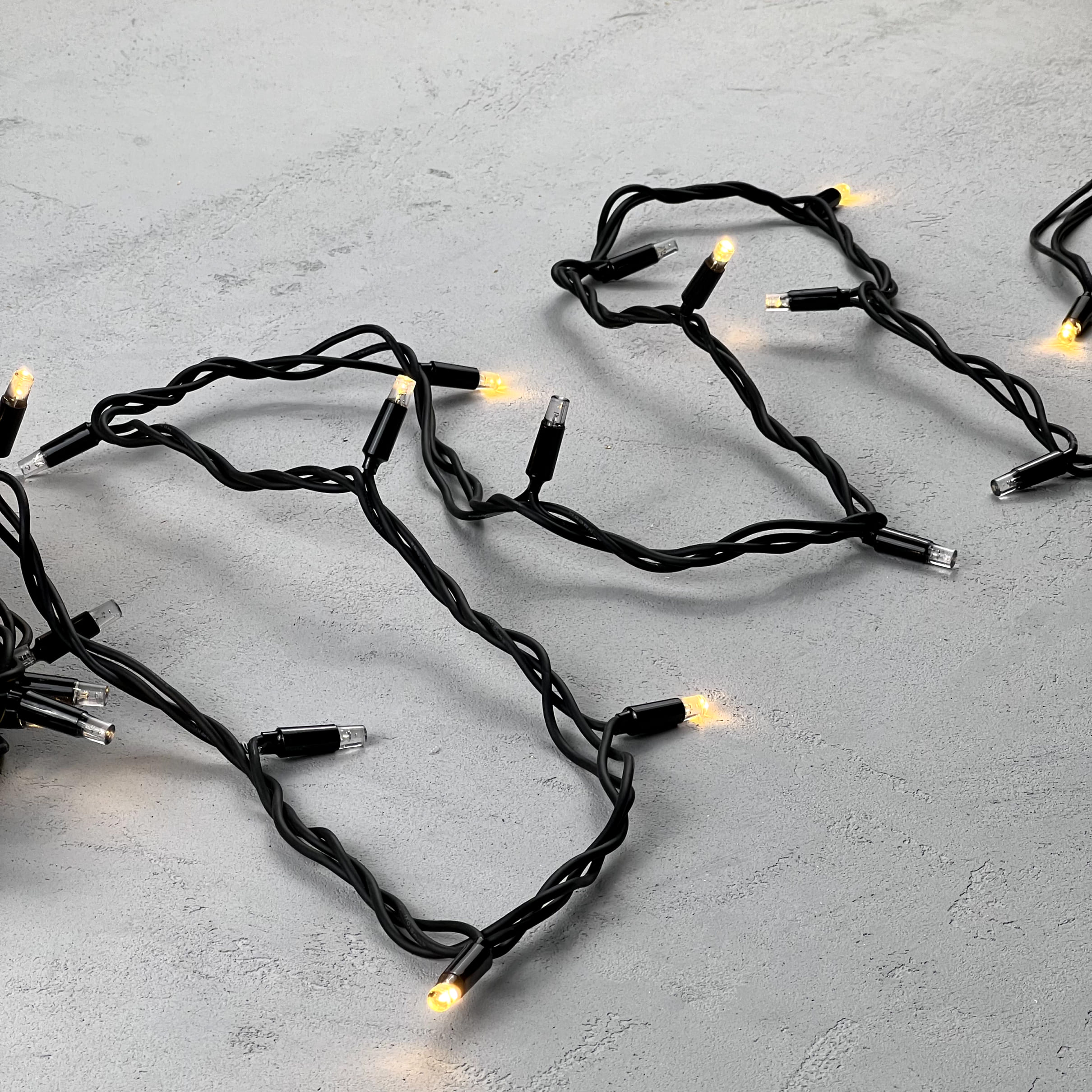 Гирлянда Нить 10м Тепло-Белая с Мерцанием Каждого Диода 220В, 75 LED, Провод Черный Каучук, IP65 LTC LL75ABL-1-2WW в Оренбурге