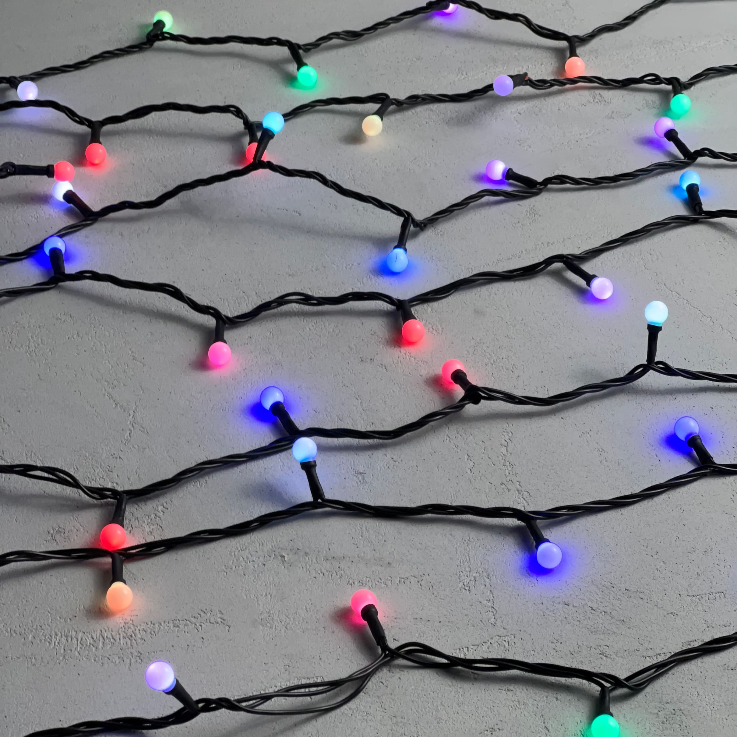 Купить "Гирлянда «Шарики» 10м RGB 220B, Диаметр Шарика 13мм, 100 LED, Провод Черный ПВХ, IP65 LTC SB100-1-2RGB"