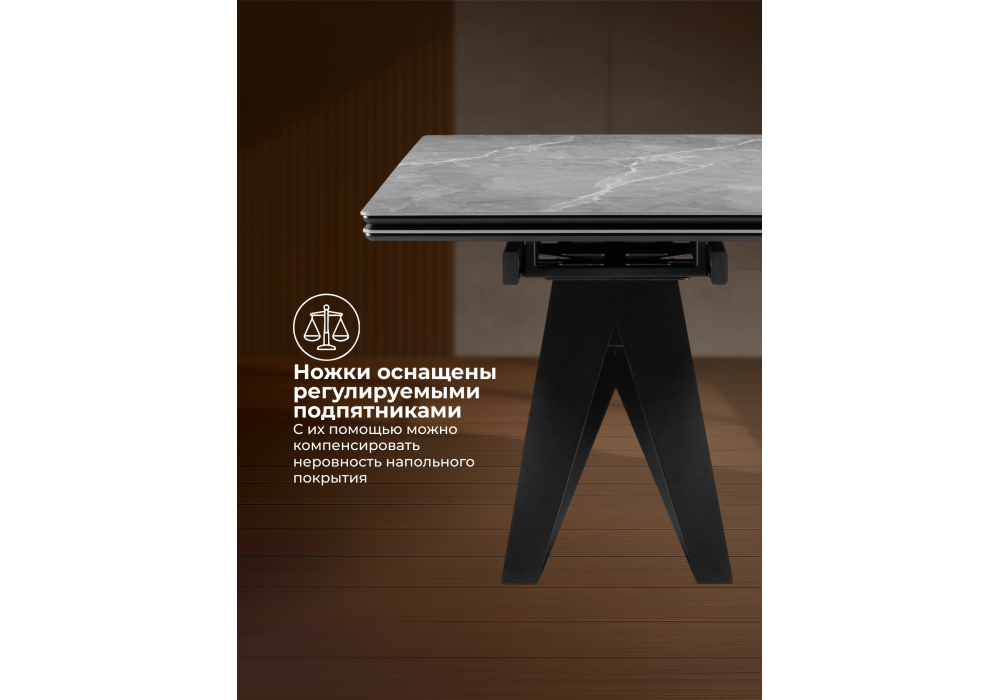 Керамический стол раздвижной Woodville Блэкберн 140(200)х80 серый мрамор larka grey / черный 625933 в Оренбурге
