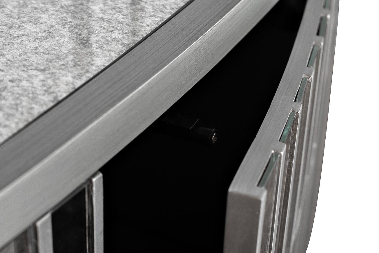 Необычайно изысканный и утонченный комод инкрустирован панелями из искусственно состаренного зеркала цвета silver antique и покрыт зеркальной столешницей того же оттенка. Все детали корпуса из дерева и МДФ серебристого цвета прокрашены и залакированы вручную в несколько слоев, что придает комоду особый шарм и обаяние. Две дверцы с механизмом push-to-open открывают доступ к внутреннему отделению с полкой. Зеркальная столешница может служить красивой подставкой для фоторамок, изысканных безделушек или туалетных принадлежностей. Комод прекрасно впишется даже в устоявшийся интерьер, дополнив меблировку изящной спальной или гостиной комнаты, а также элегантной прихожей. Комод гармонично дополнят тумбочка арт.KFG077 и консоль арт.KFG080 схожего дизайна.