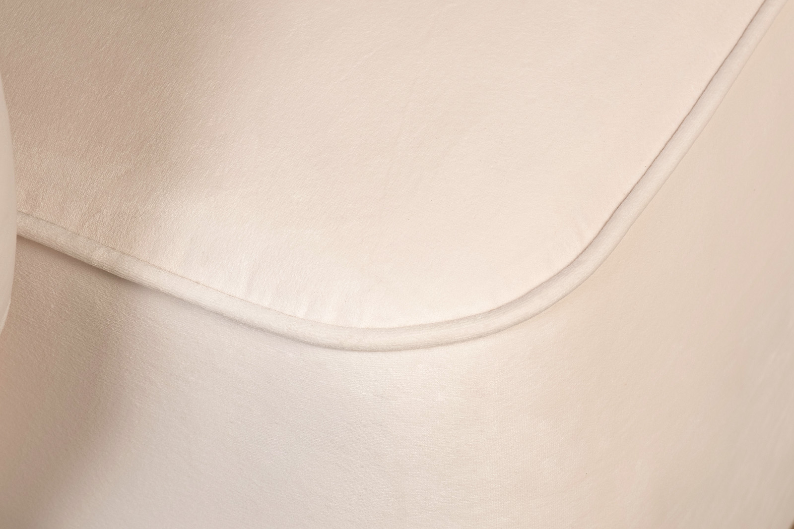 Мебель светлых оттенков - современный тренд. В данном кресле сочетается мягкий велюр нежного оттенка слоновой кости, золотое основание из нержавеющей стали и простроченная спинка.