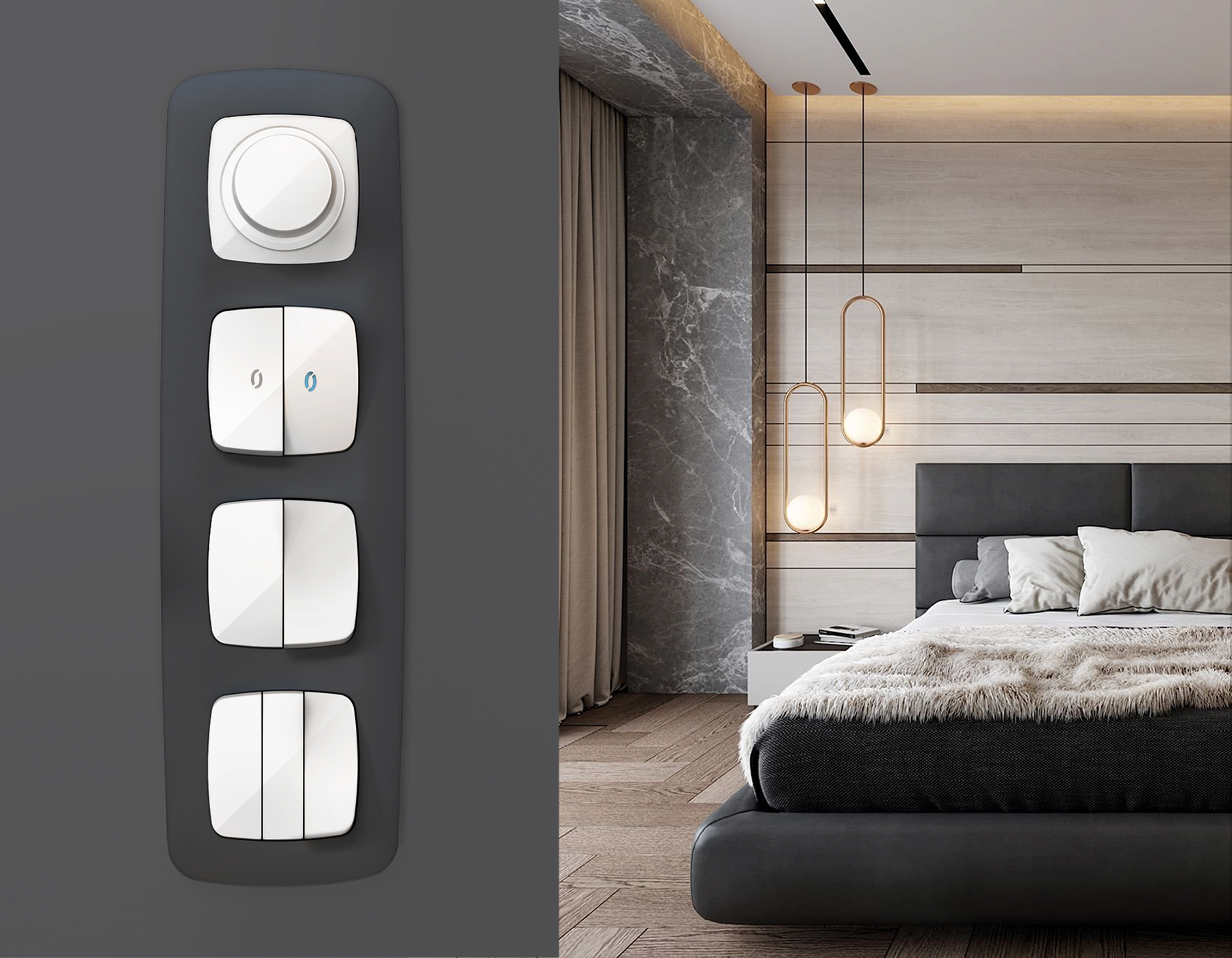 Многогранный ассортимент Ambrella Volt включает в себя механизмы, лицевые панели и рамки, а также комплекты, доступные в различных цветовых решениях. Продукция представлена в модульном исполнении, что позволяет гибко настраивать внешнийвид и функциональность. Вам будет легко заменить лицевую панель, рамку или механизм, найдя идеальное сочетание цветов.