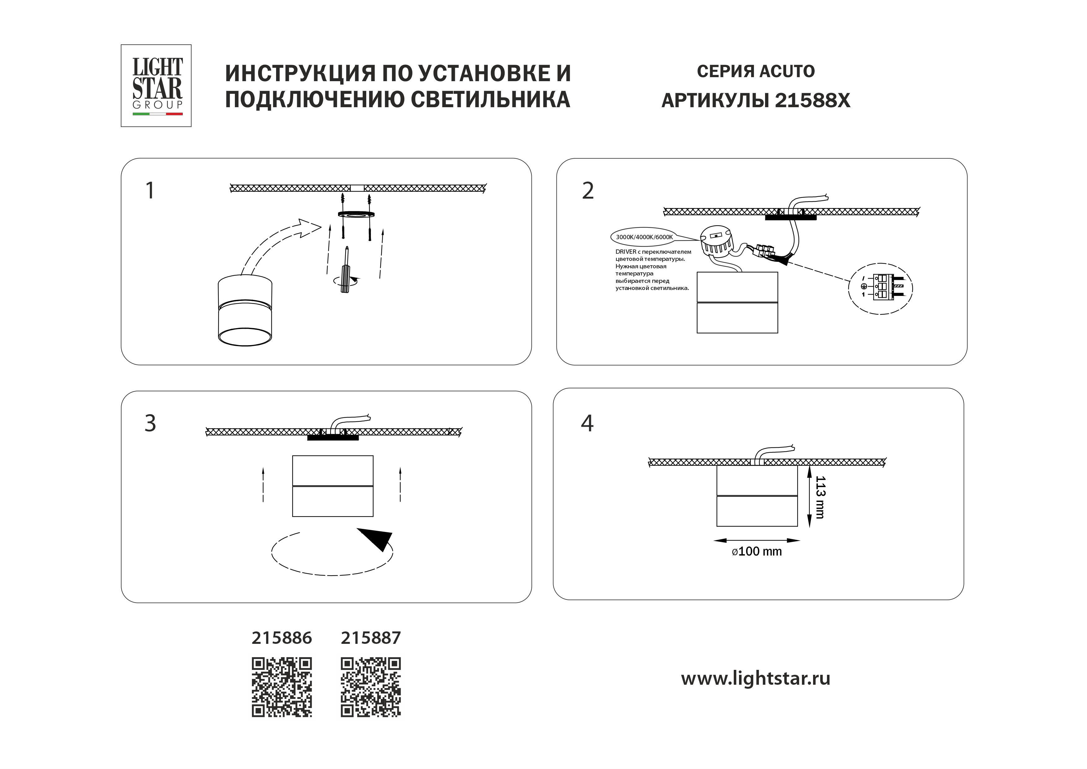 Накладной светодиодный светильник с переключателем света Lightstar Acuto 215886 в Оренбурге