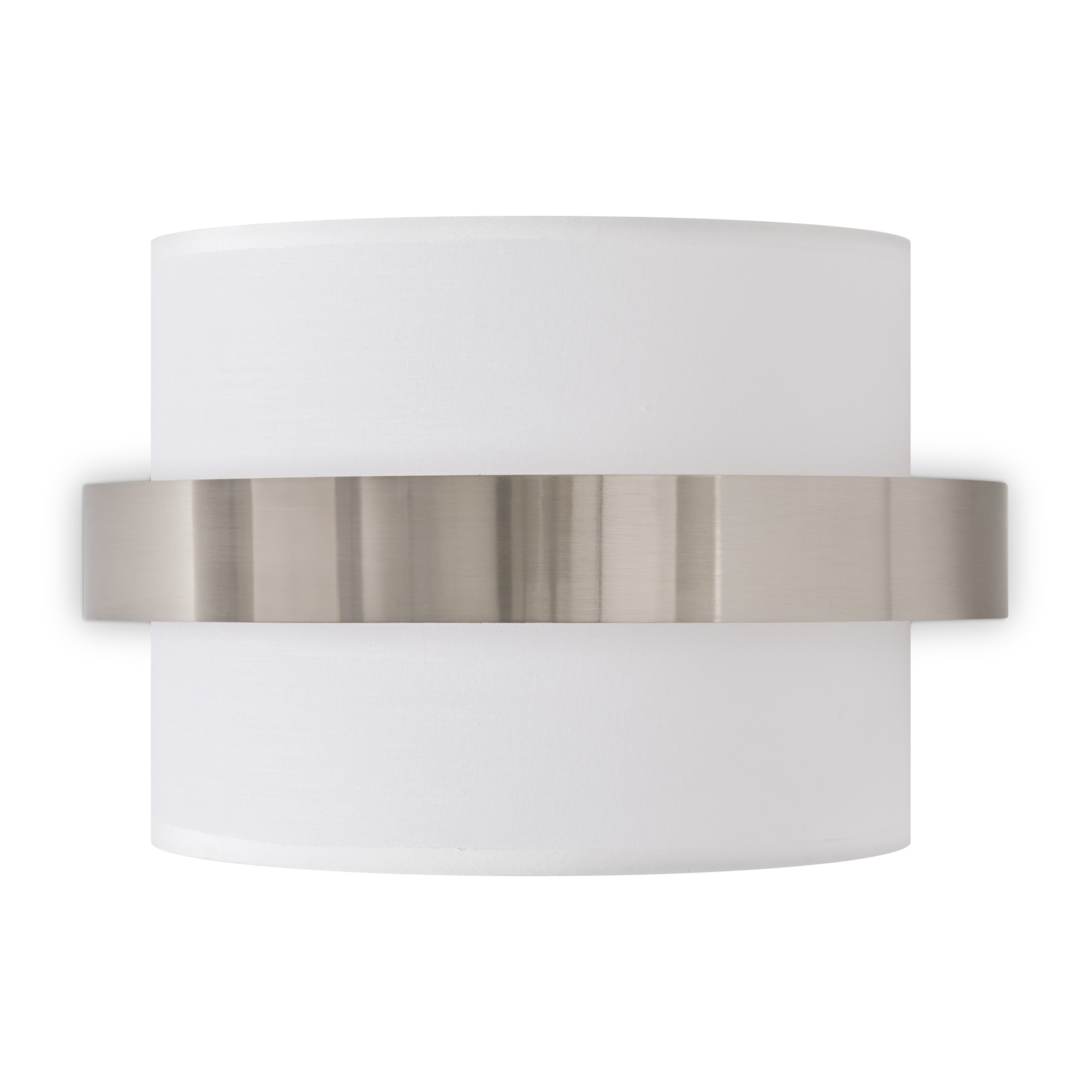 Цилиндрической формы абажур из ткани белого цвета. Декоративная парящая окантовка из металла в цвет арматуры. Регулируется по длине. Компактные размеры подходят для низких потолков и небольших интерьеров. Металлическая арматура, цвет - латунь и никель. Источник света — лампа с цоколем Е14, E27 и для настенного бра дополнительный LED с температурой свечения 3000 K.