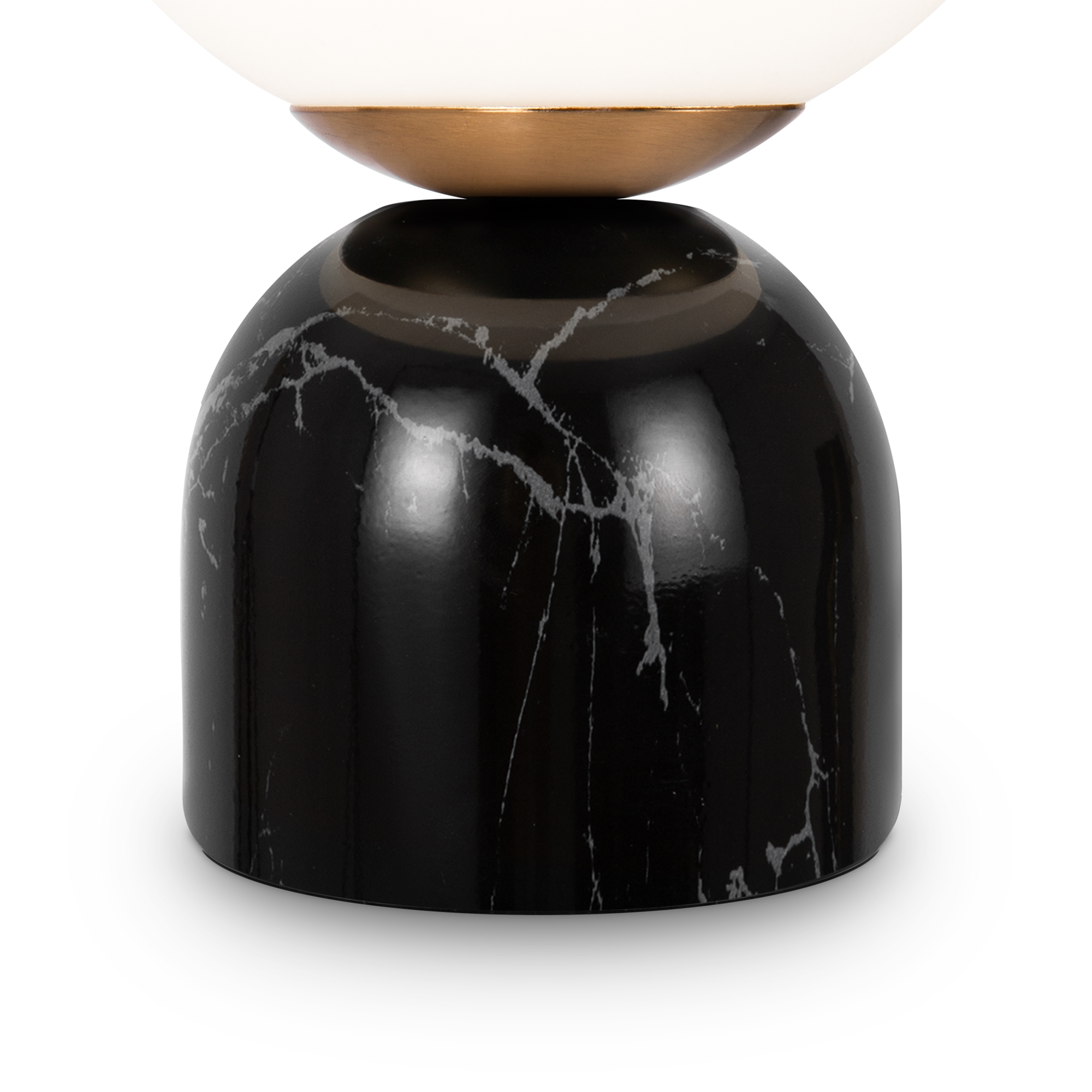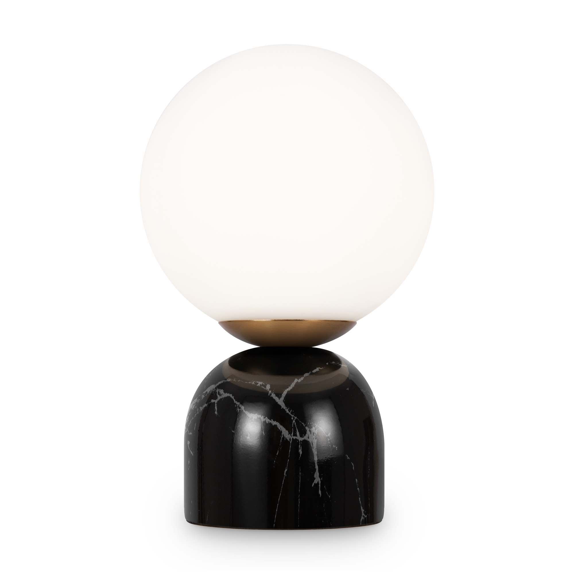 Материал основания — натуральный мрамор с уникальным рисунком. Цвета — белый, черный. Шаровидный плафон. Функция touch-dimming позволяет регулировать яркость света. Источник света — лампа с цоколем E14.