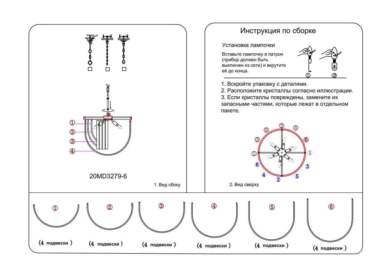 - Количество ламп: 6 шт