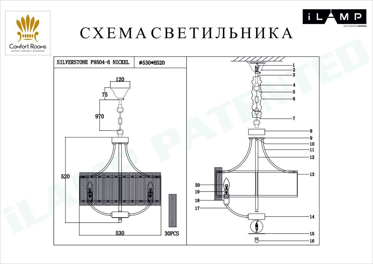 Купить "Подвесная люстра iLamp Silverstone P9504-6 NIC"
