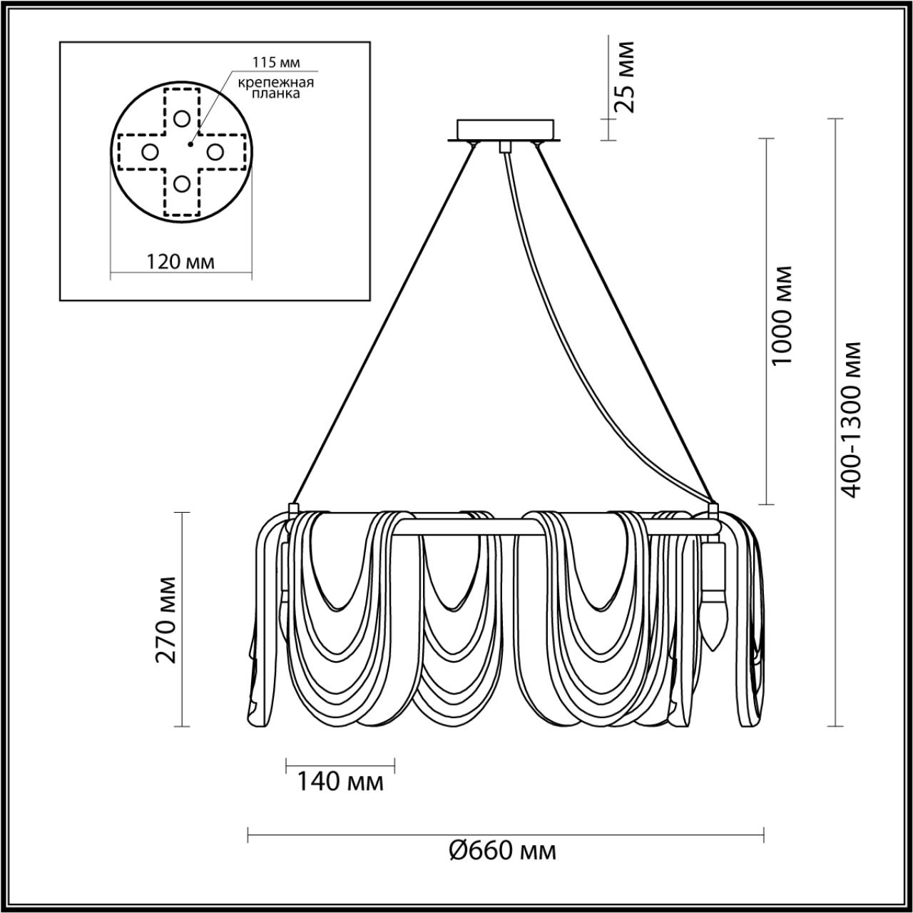- Высота плафона (абажура): 270