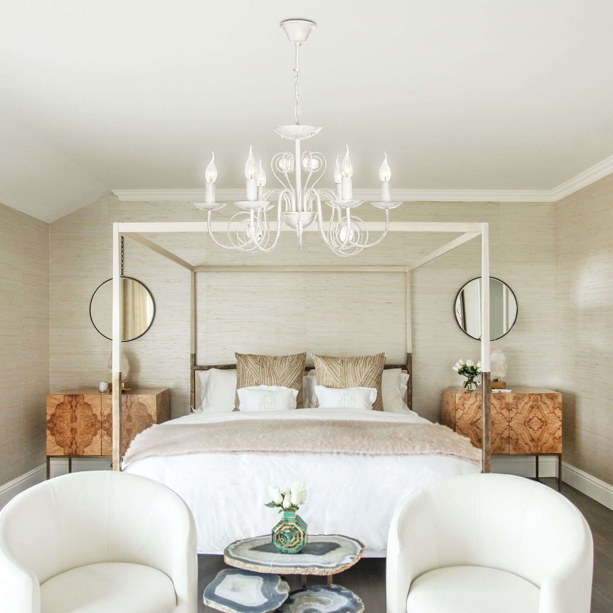 Классическая люстра с хрусталем на 6 рожков в цвете белый с золотом преобразит потолочное пространство и создаст в вашем помещении комфортное полноценное освещение на площади 29 м кв. Изящные формы и классический стиль добавят вашей гостиной утонченного аристократизма.