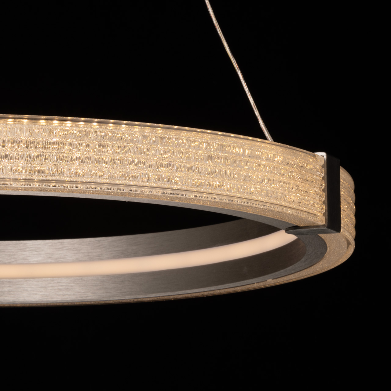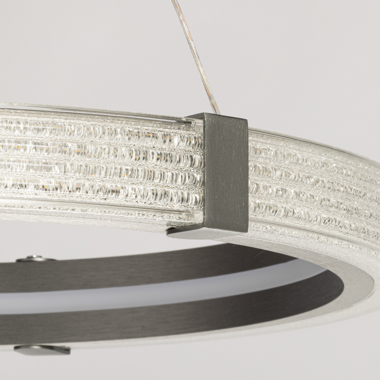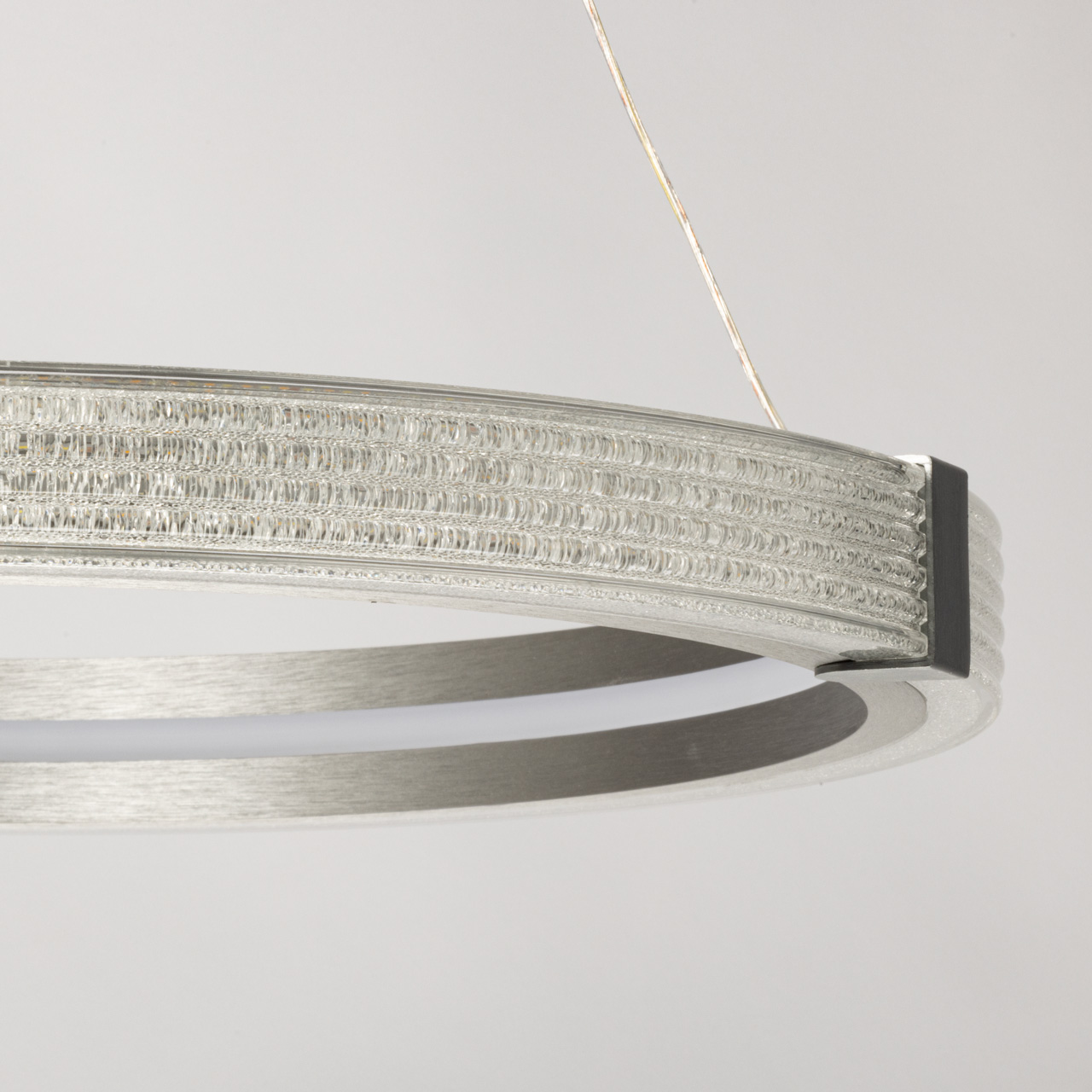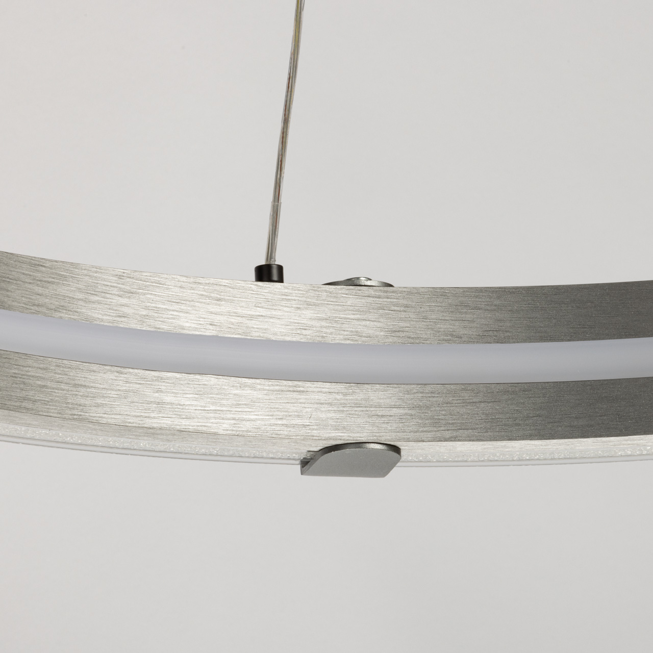 Основное внимание в светильнике Платлинг привлекает массивное кольцо, выполненное из металла. Это кольцо не только служит основой светильника, но и является его декоративным элементом. Гальванизированная отделка в лаконичном сером матовом цвете придаёт изделию современный вид, который гармонично вписывается в минималистичные интерьеры. Конструкция кольца позволяет равномерно освещать как внутреннюю, так и внешнюю его часть, создавая мягкое и комфортное освещение.Внутри кольца расположены встроенные светодиоды, которые обеспечивают мощность в 50 Вт. Это достаточно для освещения пространства площадью до 18 квадратных метров, что делает светильник Платлинг идеальным выбором как для жилых помещений, так и для офисов или публичных пространств. Светодиоды закрыты акриловым рассеивателем с акриловой крошкой, имитирующей стекло. Это решение не только придаёт светильнику изысканный вид, но и способствует красивому распределению света.Одной из ключевых особенностей светильника Платлинг является возможность регулировки температуры света. С помощью настенного выключателя можно изменять цветовую температуру в диапазоне от 3000 до 6000 К. Это позволяет адаптировать освещение под различные нужды: от тёплого света для создания уюта до холодного для продуктивной работы. Такая функция делает светильник универсальным решением для различных ситуаций и настроений.Светильник Платлинг станет отличным дополнением для современных лаконичных интерьеров. Его стильный и минималистичный дизайн прекрасно сочетается с другими элементами хай-тек стиля, такими как стекло, металл и бетон.