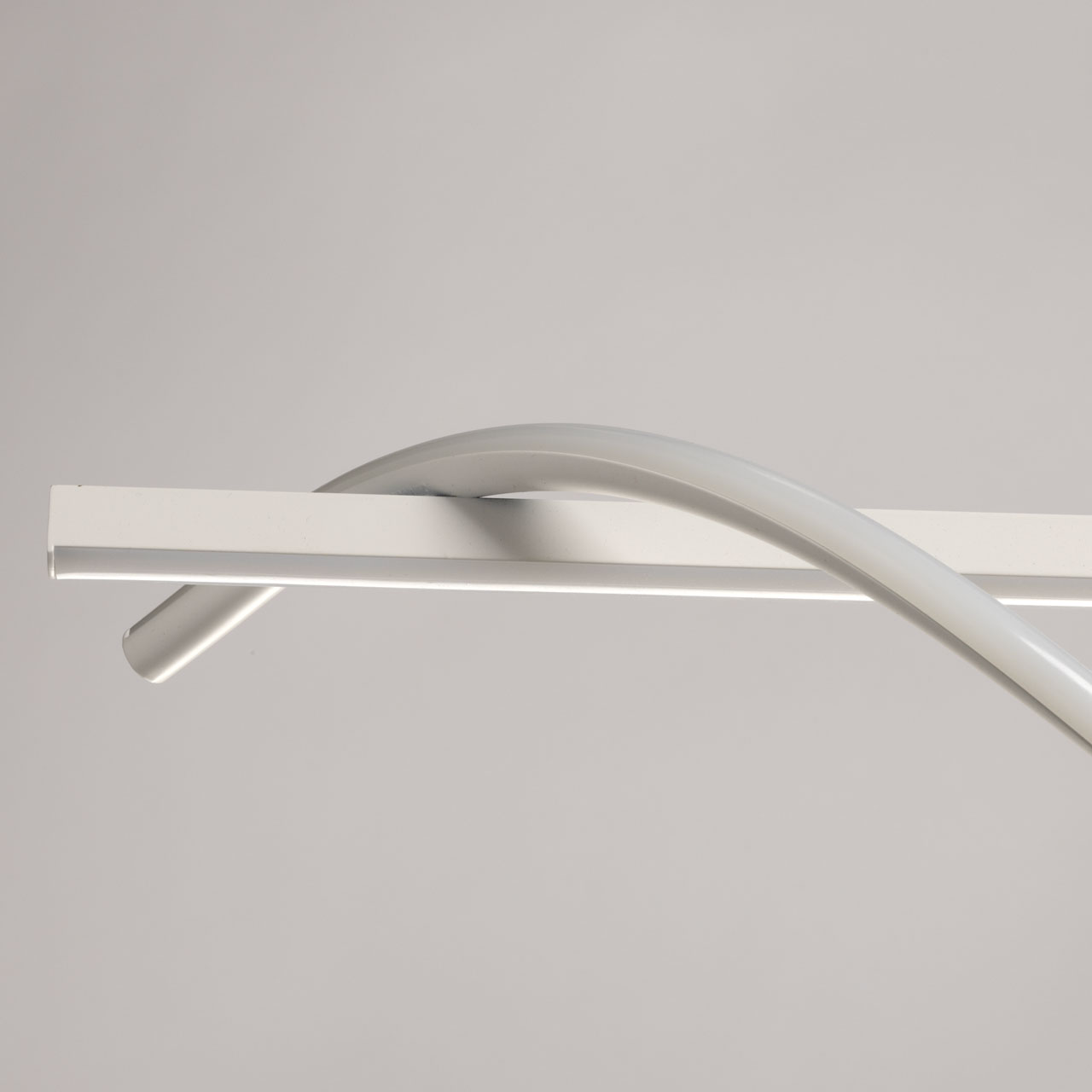 Металлическое основание потолочной люстры окрашено в белый цвет. Плафон люстры выполнен из сплава алюминия с цинком и окрашен в цвет основания. Светодиодные источники света закрыты белым акрилом.