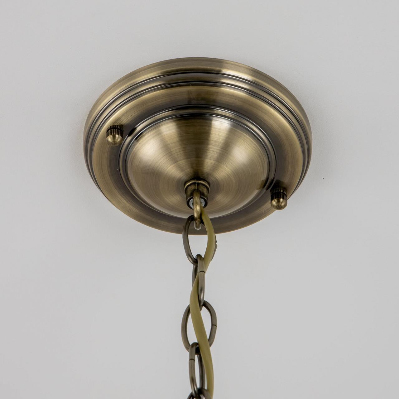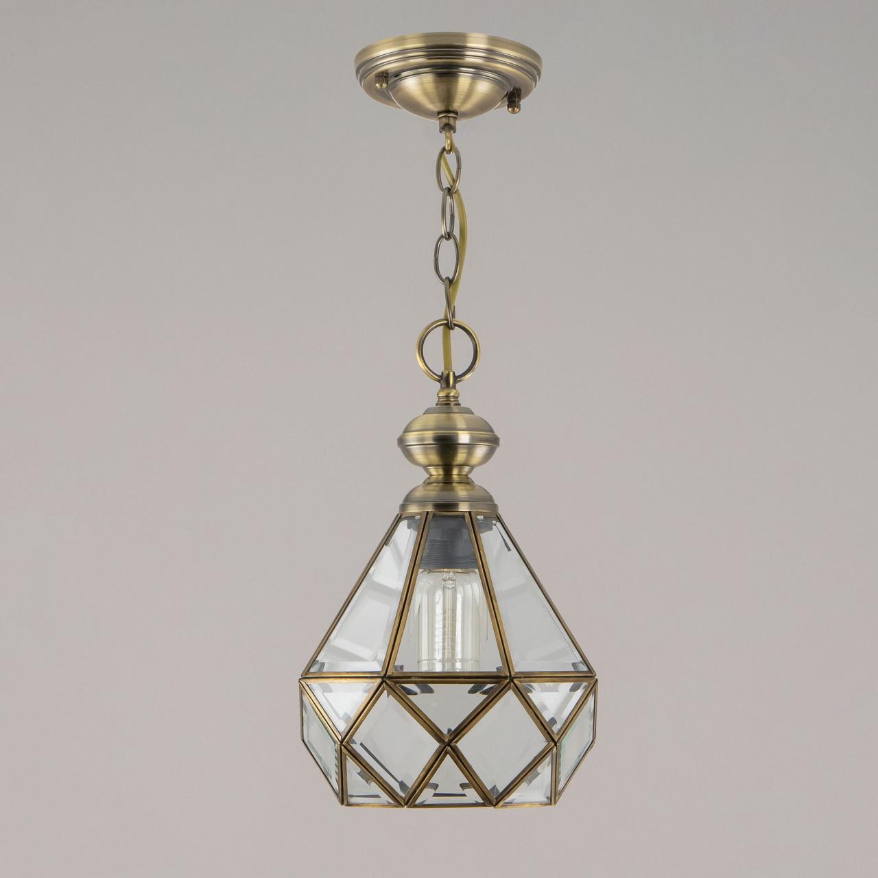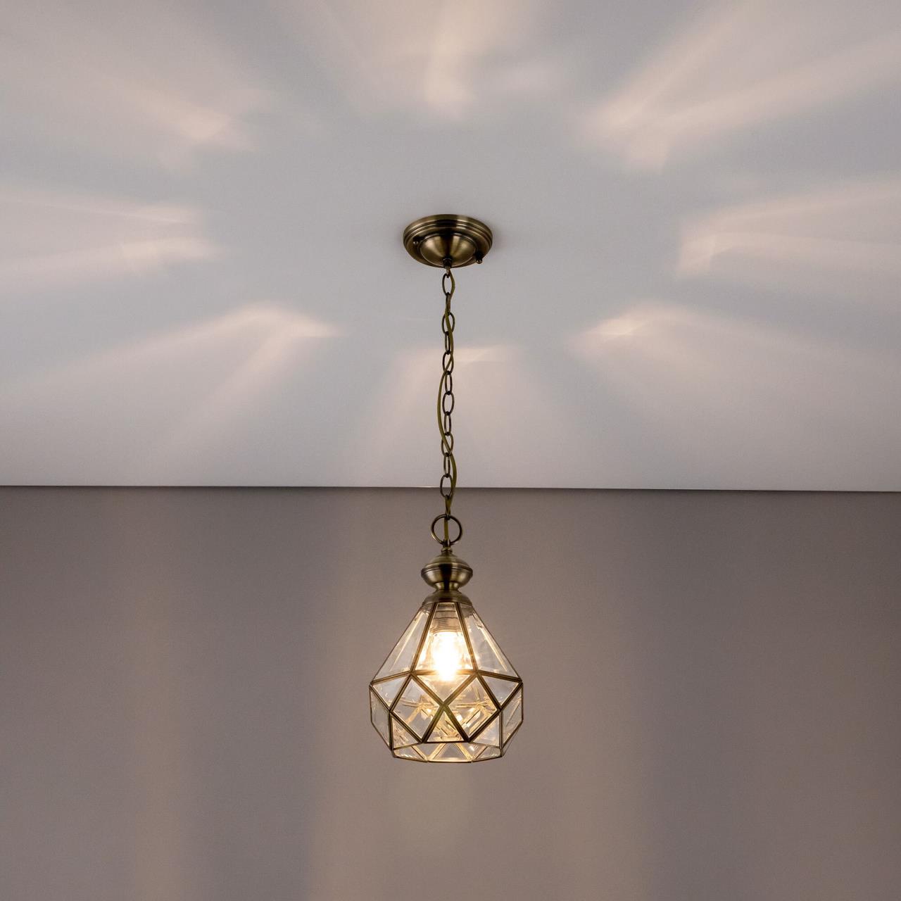 Подвесной светильник Citilux Витра-1 CL442110 в винтажном стиле. Основание металлическое, цвет бронза. Плафон ручной работы из прозрачного витражного стекла. В изделии 1 лампа Е27 максимальной мощностью для ламп накаливания 75Вт. Светодиодные лампы можно использовать более яркие. Высота подвеса регулируется при установке от 32см до 1м, диаметр 20см, осветит около 4м². Тип крепления – планка.