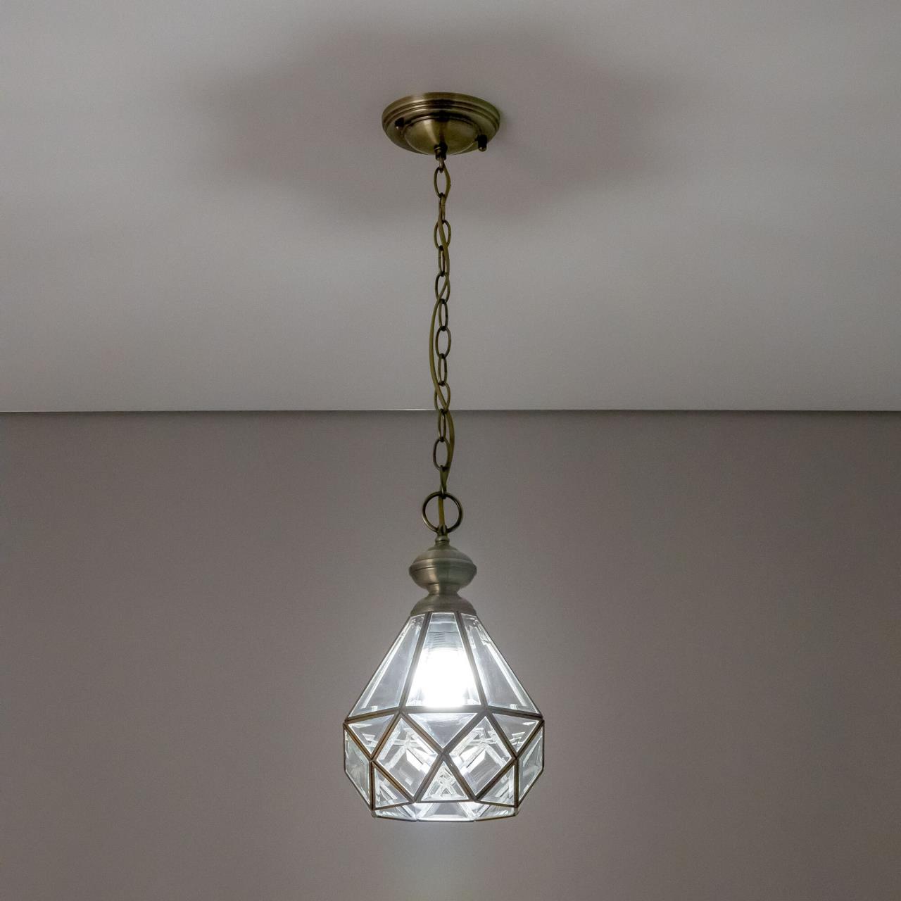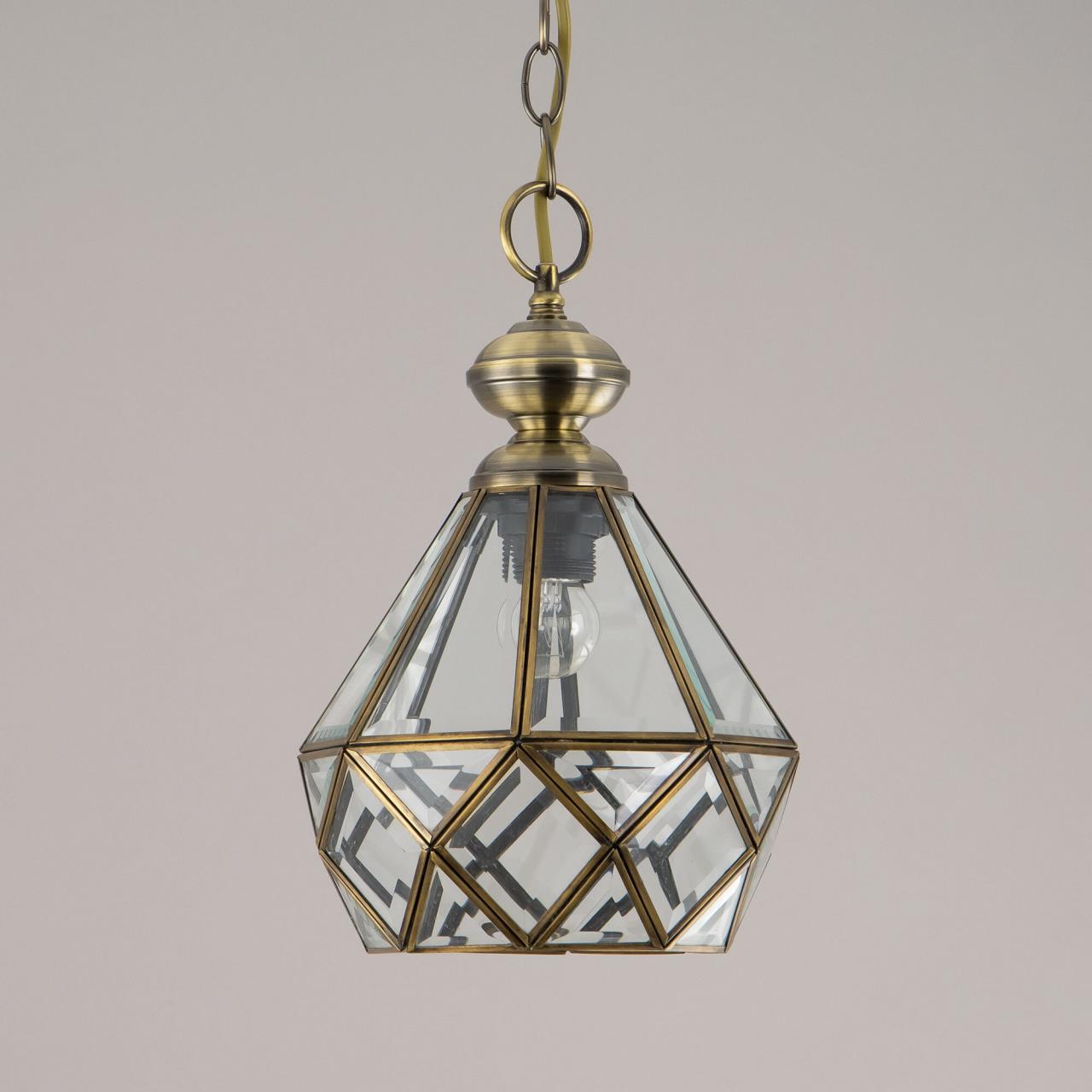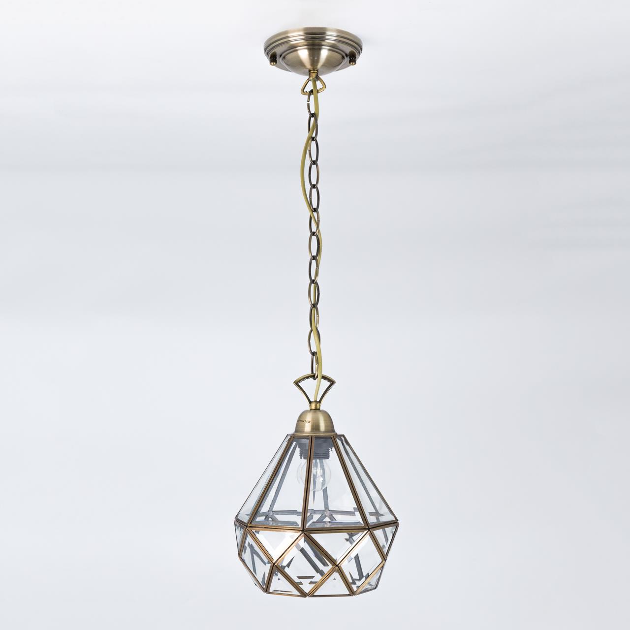 Подвесной светильник Citilux Витра-1 CL442110 в винтажном стиле. Основание металлическое, цвет бронза. Плафон ручной работы из прозрачного витражного стекла. В изделии 1 лампа Е27 максимальной мощностью для ламп накаливания 75Вт. Светодиодные лампы можно использовать более яркие. Высота подвеса регулируется при установке от 32см до 1м, диаметр 20см, осветит около 4м². Тип крепления – планка.