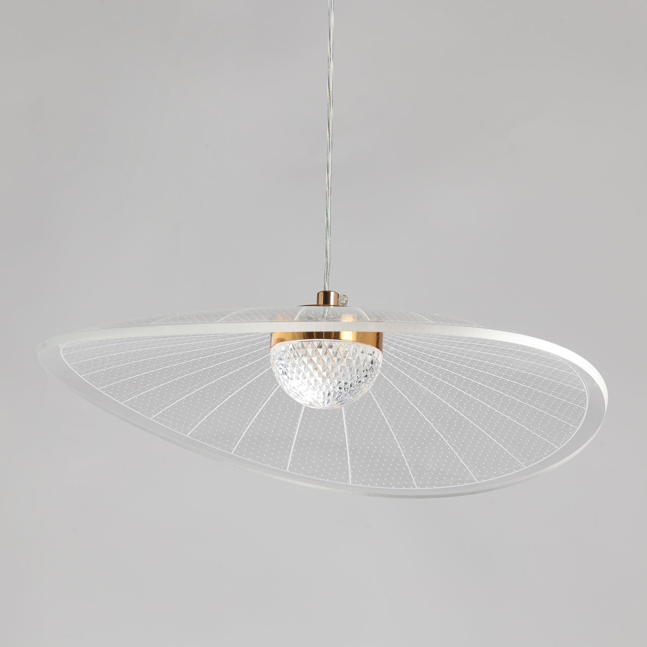 Металлическое основание светильника гальванизировано в цвет золота. Корпус плафона выполнен из сплава алюминия с цинком. Плафон выполнены из прозрачного акрила.