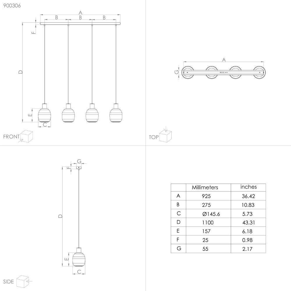 - Количество ламп: 4 шт