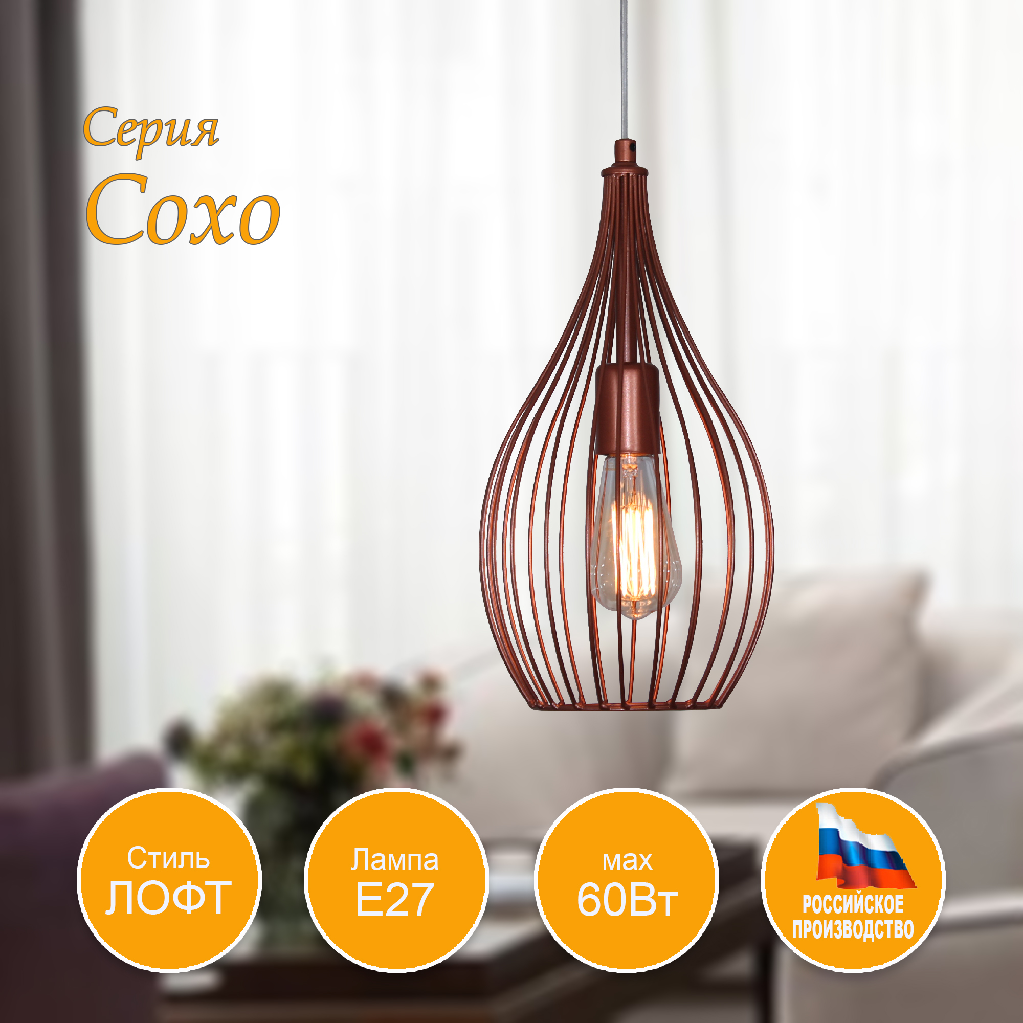 Модель из коллекции "Сохо" отлично подойдет для установки на потолок помещения, оформленного в стиле Лофт. Подвесной светильник с плафонами из металлических прутьев осветит помещение площадью около 7 м2. Производитель рекомендует использовать для устройства лампы накаливания с цоколем E27 и мощностью 60 W или светодиодные (филаментные/классические) лампы. Прибор произведен с использованием материала: металла. Может использоваться для натяжного потолка. Лампы в комплект не входят. Данную модель 1005405069 можно купить в интернет магазине 220svet.ru