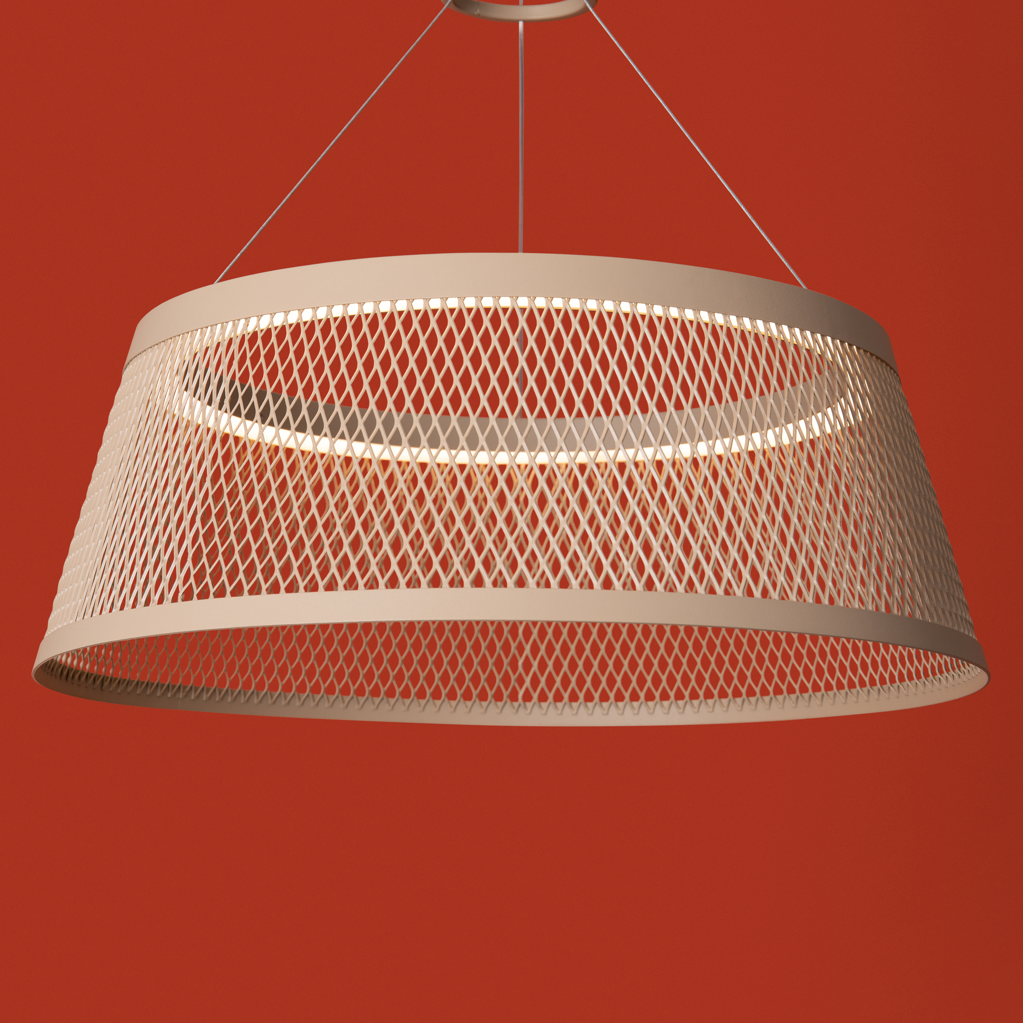 Материал арматуры — металл, цвет — Серо-бежевый. Подвесной светильник оснащен LED-источником света с цветовой температурой 3000К. Сетчатый металлический плафон создает оригинальный световой рисунок. Особенность серии — окраска в актуальные оттенки, включая серо-бежевый (RAL 1019), что позволяет создавать гармоничные цветовые решения в современном интерьере.