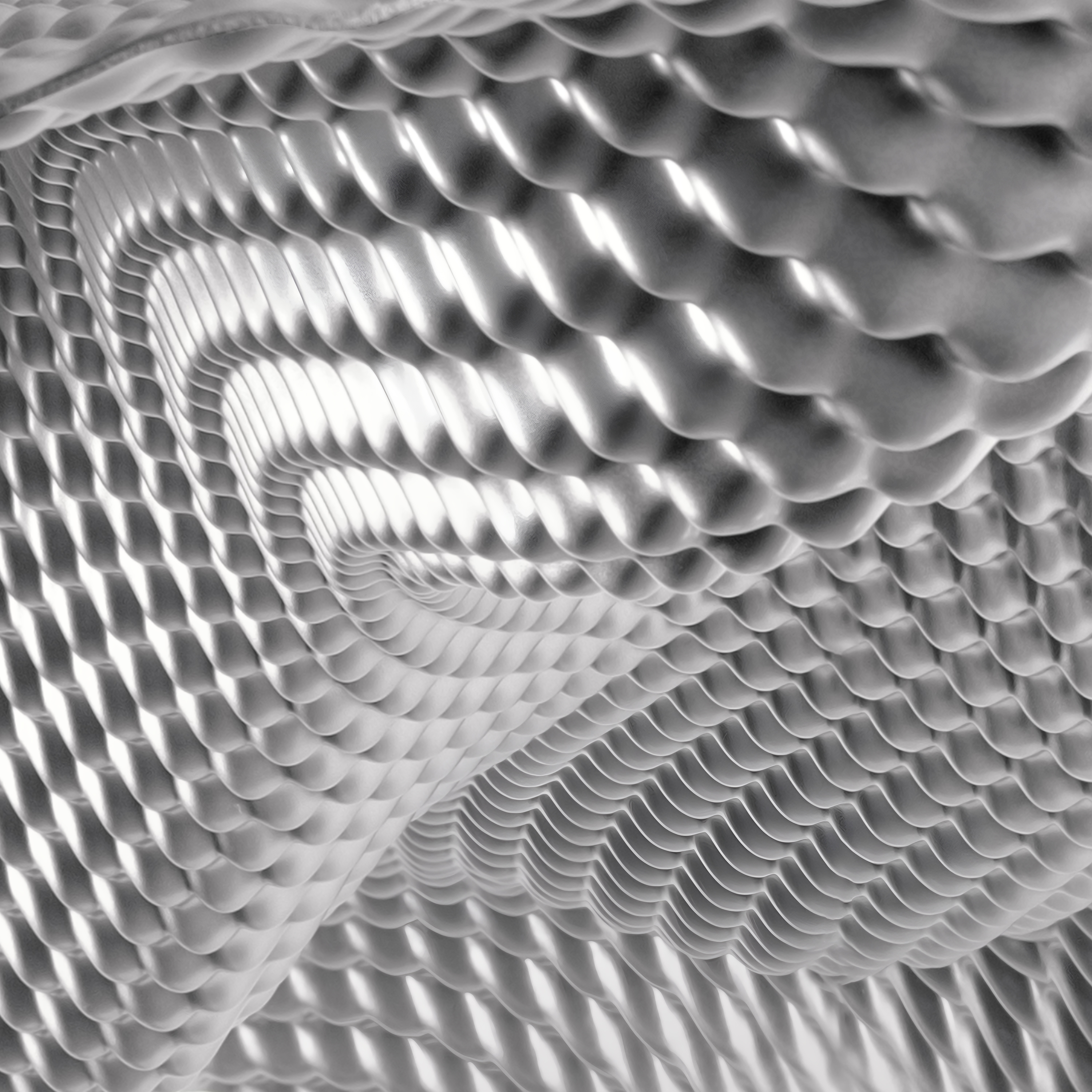 Подвесной светильник, который больше напоминает современную скульптуру, чем привычный источник света. Его плавный, текучий силуэт будто завис в воздухе — как застывшая волна или легкая ткань, пойманная движением. Металлическая сетчатая поверхность создает игру света и тени, придавая всему пространству ощущение глубины и динамики.