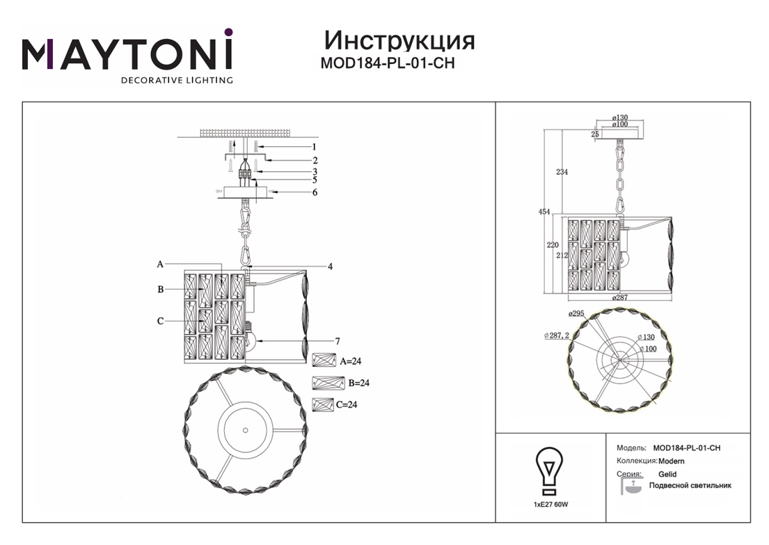 Подвесной светильник Maytoni Gelid MOD184-PL-01-CH — это надёжный и долговечный осветительный прибор, который станет прекрасным дополнением вашего дома и будет радовать вас своим стильным дизайном и функциональностью на протяжении многих лет.