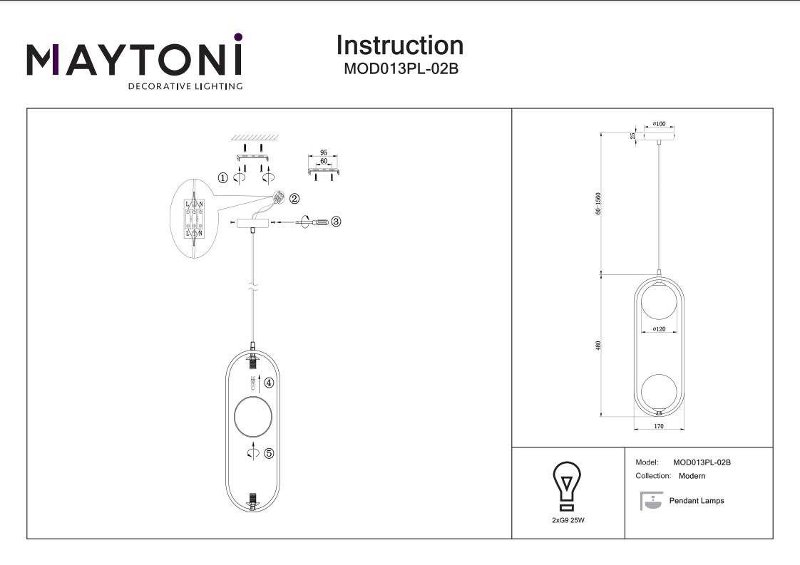 - Количество плафонов: 2