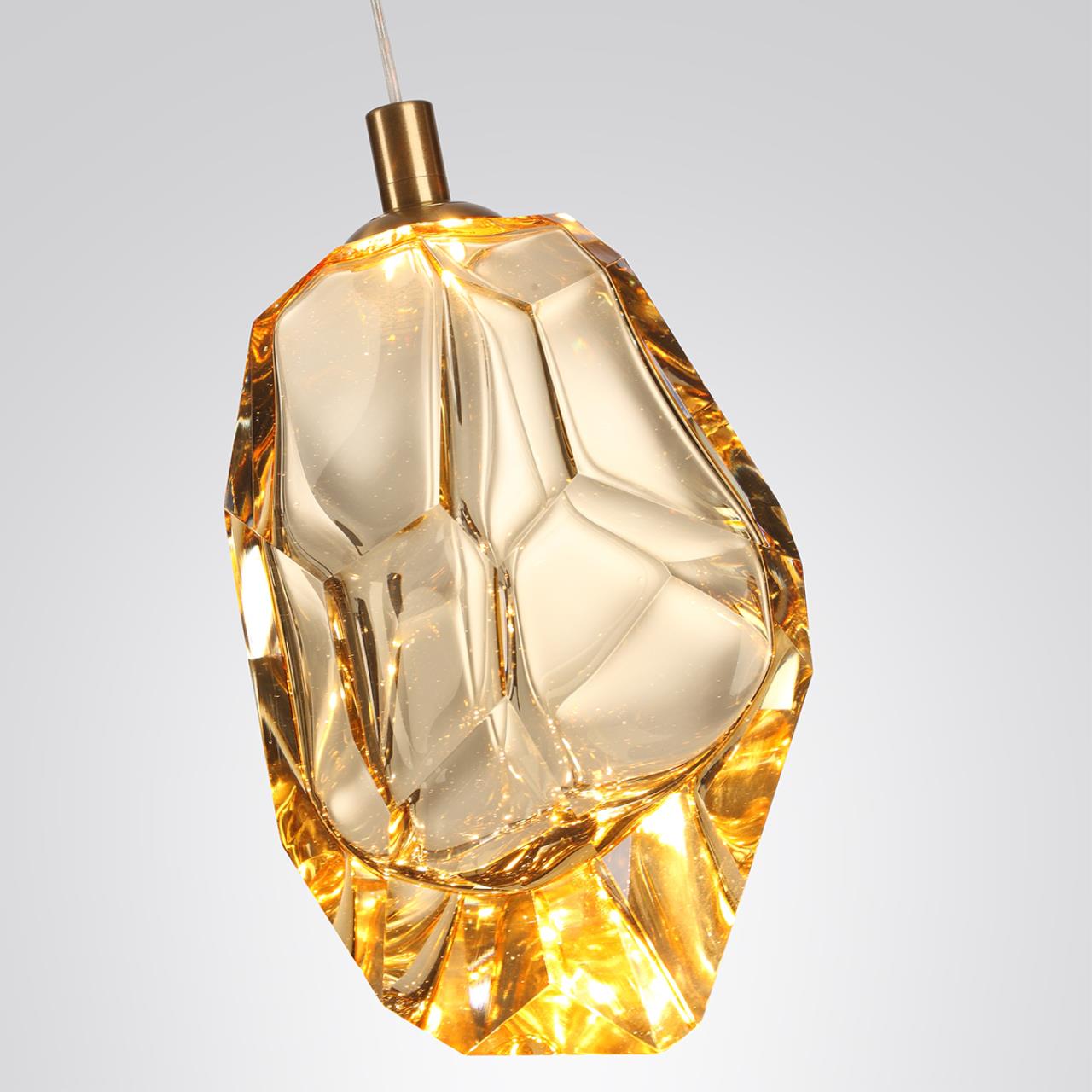 Линия Gemme ― словно россыпь самоцветов, будет радовать глаз своими чарующими гранями стекла и световым кружевом. Светильники представлены в пяти цветах: прозрачном, винном, бирюзовом, коньячном, янтарном, и трех размерах.