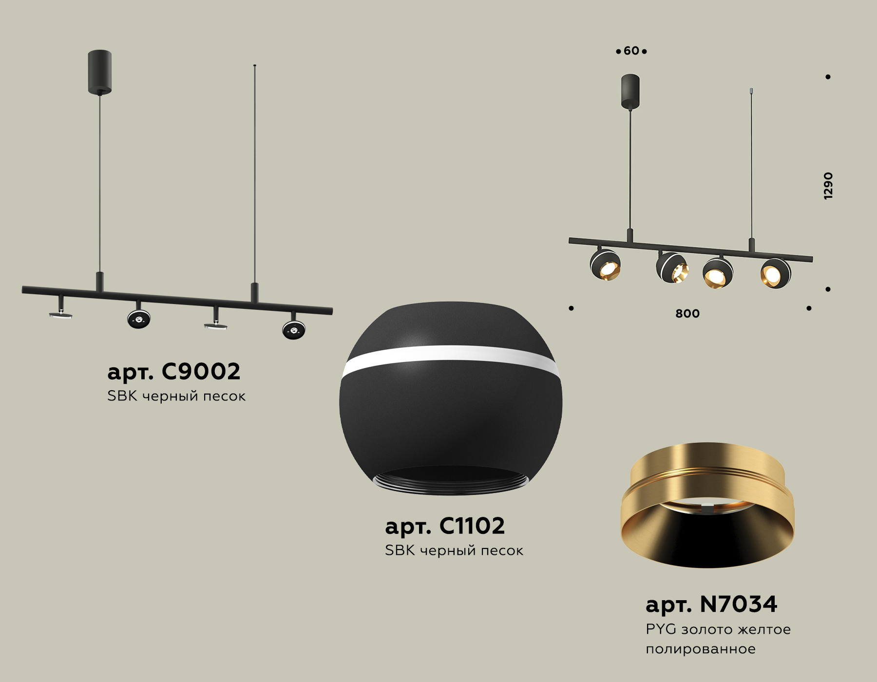 - Цвет плафонов: Золотой, Черный