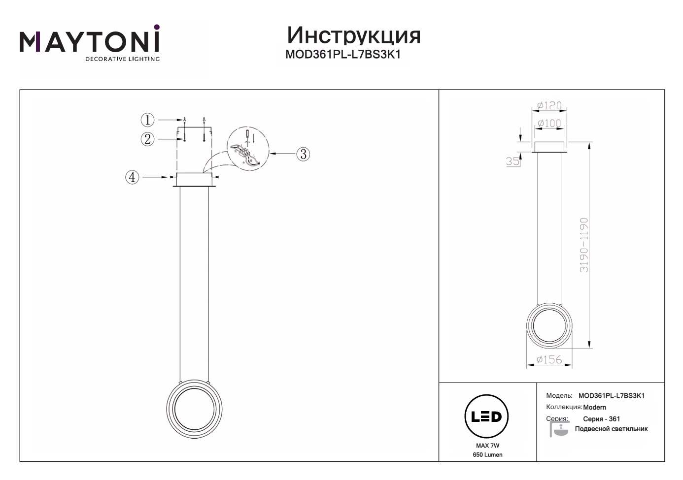 Данную модель MOD361PL-L7BS3K1 с быстрой доставкой спешите купить по цене 18 990 ₽ в магазине 220svet.ru