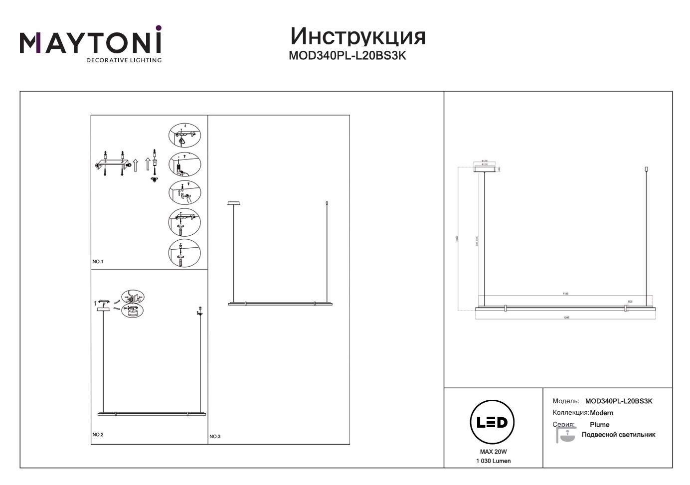 Данную модель MOD340PL-L20BS3K с быстрой доставкой спешите купить по цене 26 990 ₽ в магазине 220svet.ru