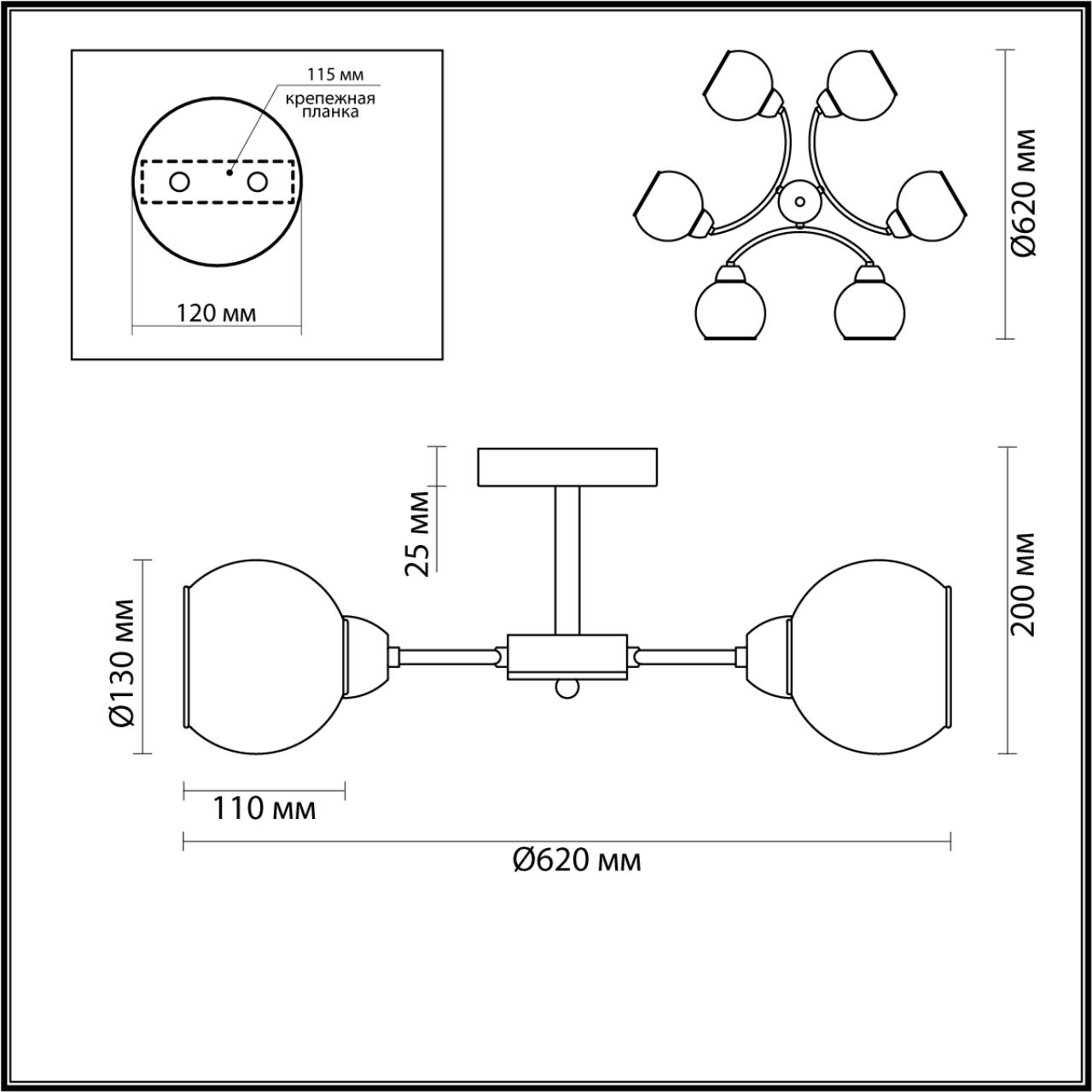 - Форма плафона: Шар