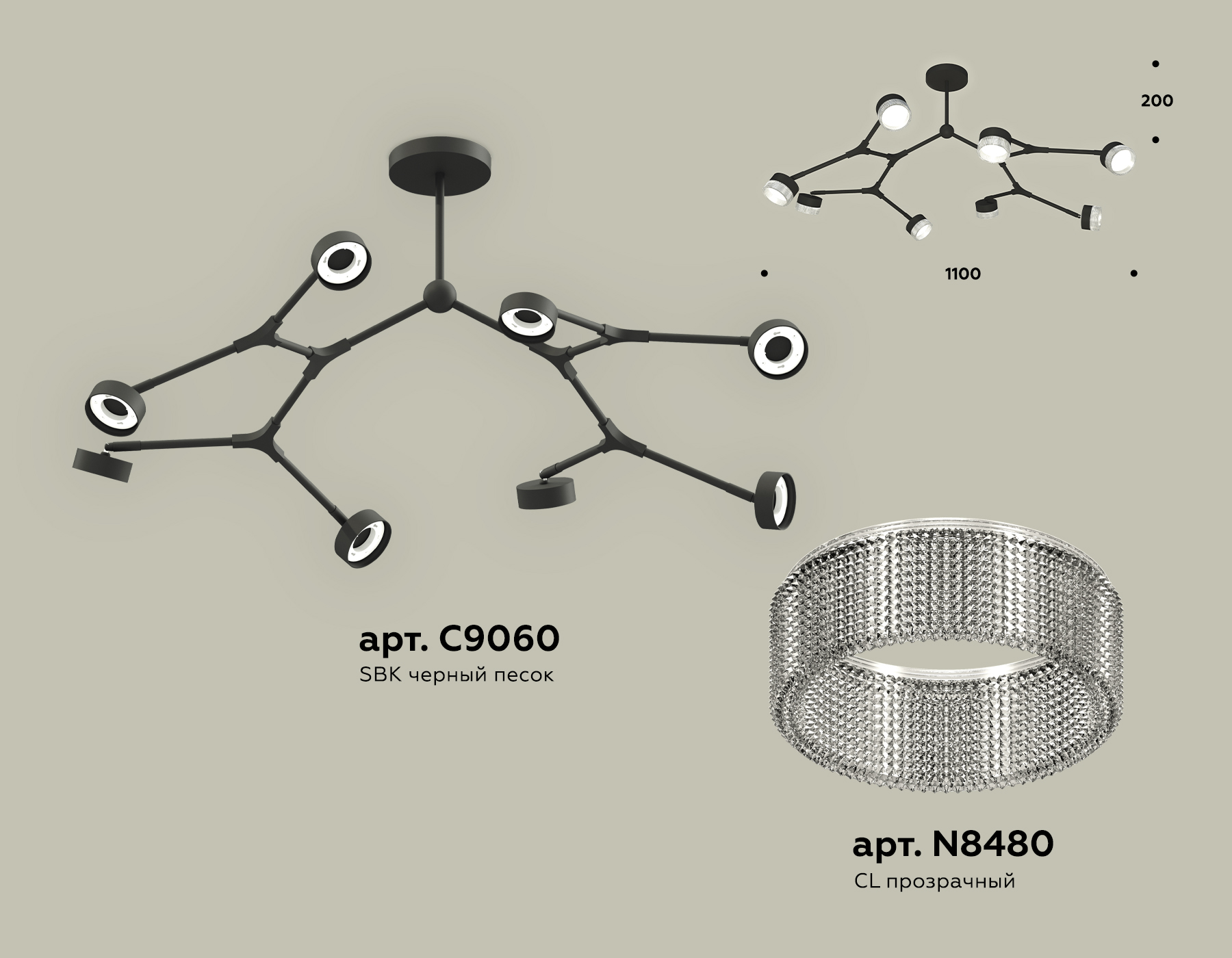 - Цвет плафонов: Прозрачный