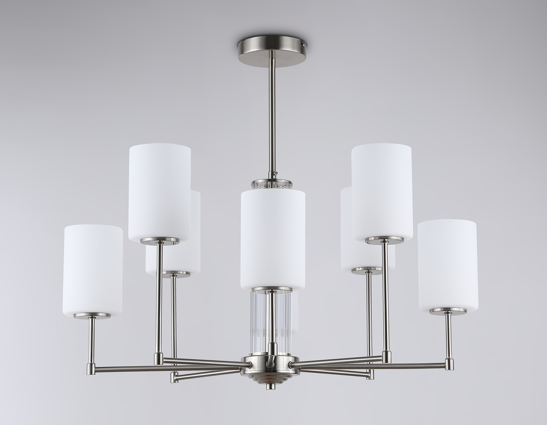 Подвесная люстра из коллекции HIGH LIGHT. Модель LH56213 представлена в стиле неоклассика. Люстра выполнена из металлического каркаса цвета никель и стеклянных матовых плафонов. Для данной модели подойдут лампы с цоколем Е27. Люстра будет прекрасным дополнением в любом помещении.