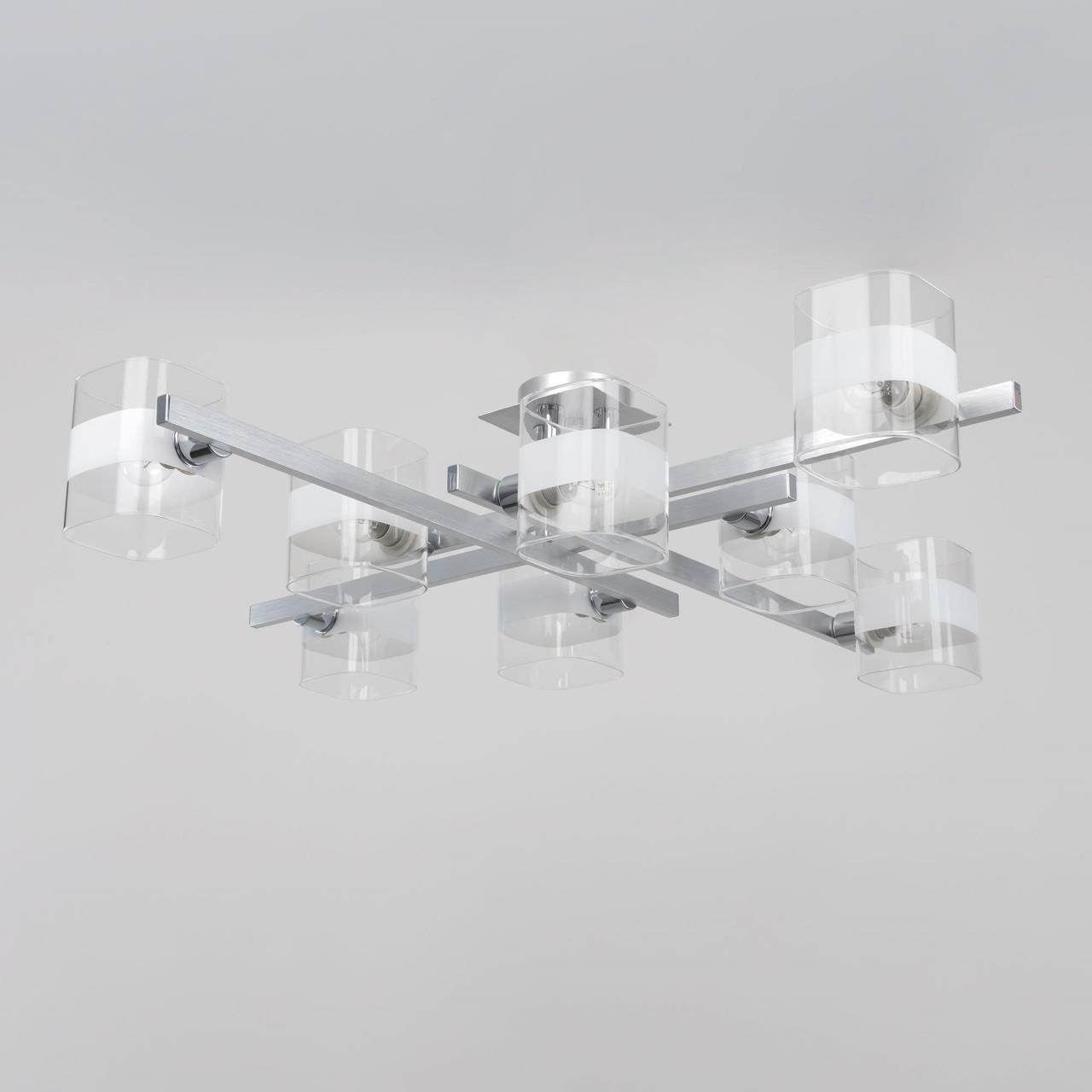 Потолочная люстра CL139280 от производителя Citilux относится к коллекции Вирта в современном стиле. Корпус металлический, цвет алюминий, с хромированными элементами. Плафоны стеклянные, прозрачные, с декоративной белой полосой. В изделии используются 8 ламп с цоколем Е14, форма колбы шарик, максимальной мощностью для ламп накаливания 60Вт (В комплект не входят, приобретаются отдельно). Светильник можно использовать как с одноклавишным, так и с двухклавишным выключателем. Подходит для всех типов потолков, в том числе натяжных. Люстра восьмирожковая, квадратной формы, размер 86х86см, высота 20см,страна бренда Дания .Купить модель CL139280 спешите в интернет-магазине 220svet.
