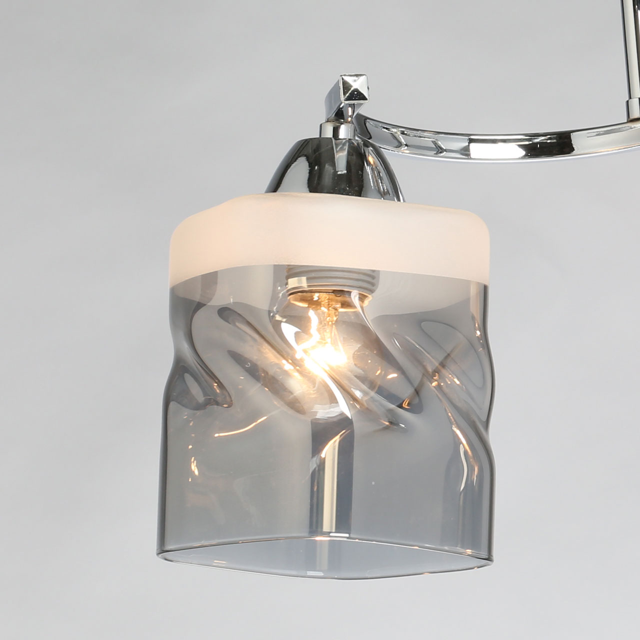 Небольшая потолочная люстра De City Тетро 673016802 дополнит интерьер в стилях контемпорари или эклектика, минимализм. Модель обладает изысканной цветовой гаммой: тонированные в дымчатый оттенок плафоны органично сочетаются с глянцевой поверхностью хромированного основания. Плафоны выполнены в очень сложной форме с декоративным «перекручиванием».