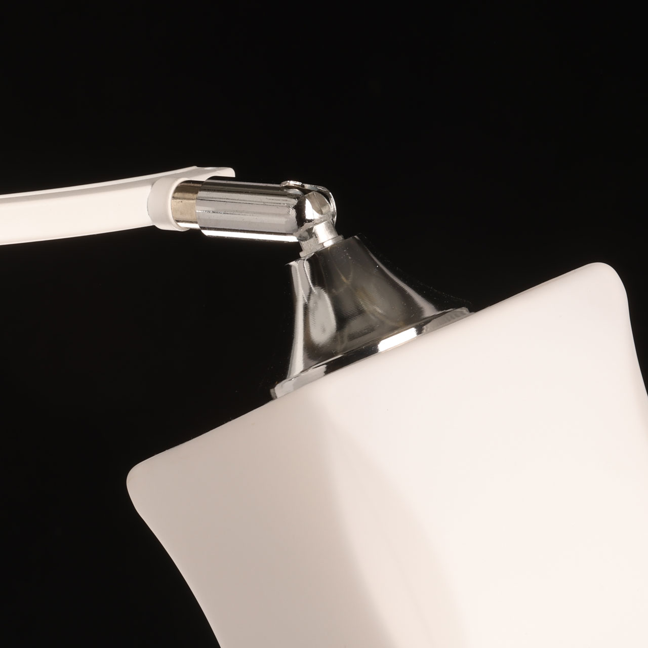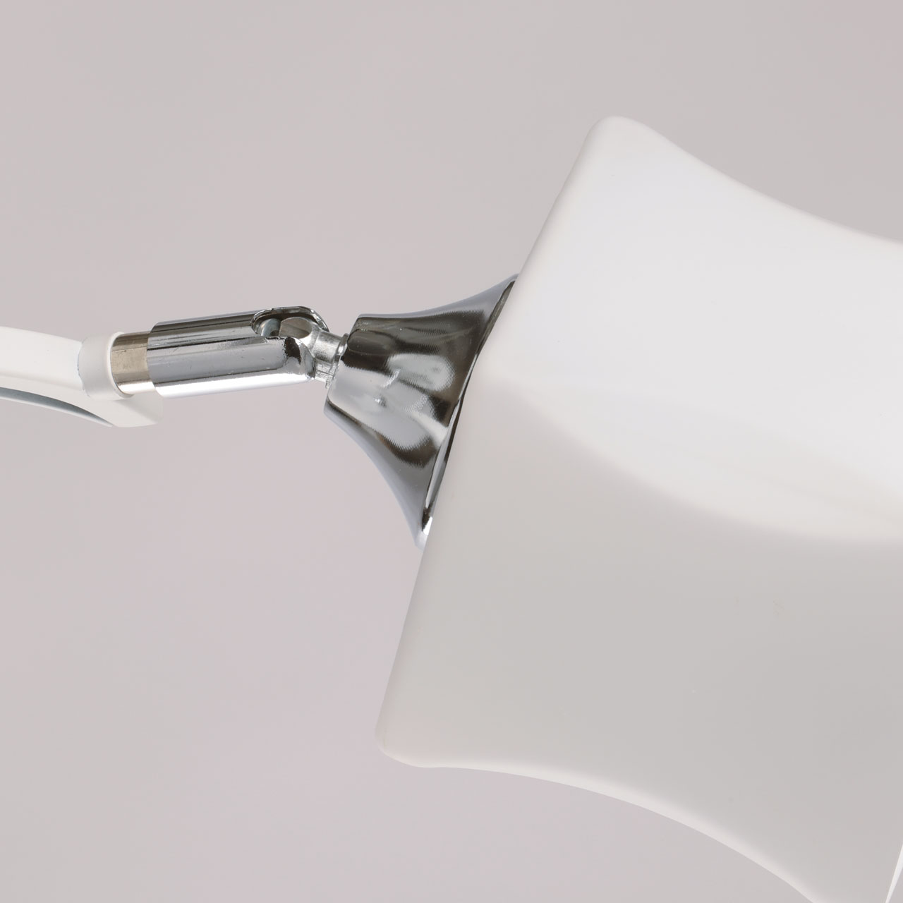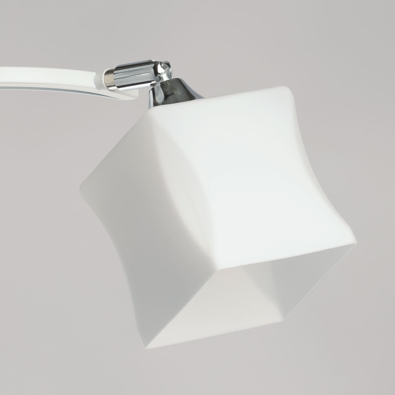 Гармоничное сочетание белого цвета и цвета хрома выгодно подчеркнет современный стиль в интерьере. Оригинальная форма плафона придает потолочной люстре изюминку. Шарниры на плафонах позволяют менять направление светового потока. Заменяемые источники света удобны в эксплуатации. Компактный размер потолочной люстры сохранит пространство комнаты при стандартных потолках.