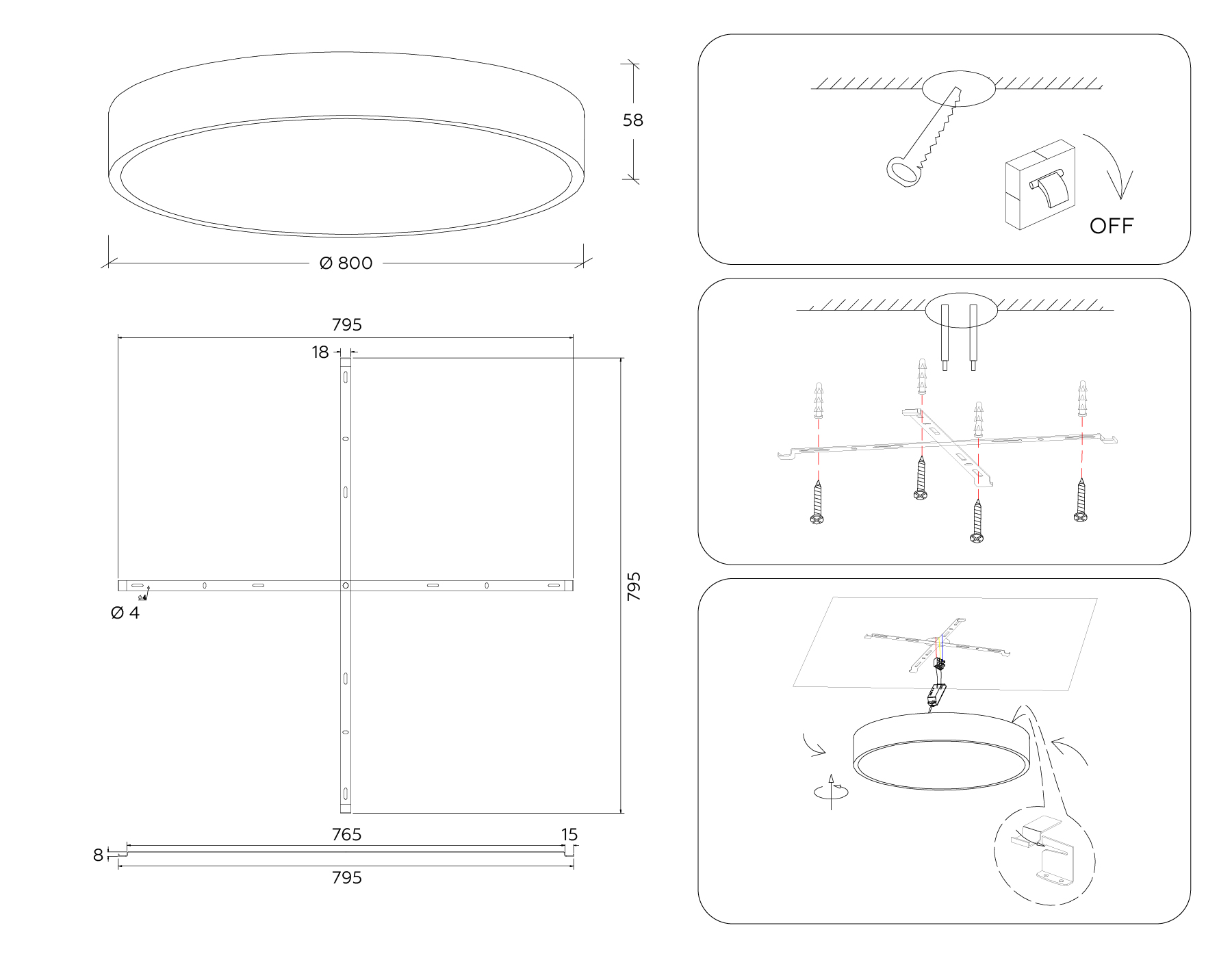 - Диаметр: 800 мм (80 см)